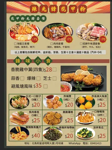 时间: 星期一12:30等候:5分钟左右服务: 收银姐姐笑笑口 好有礼貌,感觉良好食物: 花甲粉$40+鱿鱼 12 +鸡翼$12花甲粉自选 本身已包生菜 花甲 金菇 粉丝没有堂食, 外卖小店,可以美团自取或电话落单。 我门市买,等几分钟 都好快。花甲数量不少,大约十几只细细的,鱿鱼3件左右,鸡翼2只可以选麻辣,蒜香 几种口味,我选蒜香 不辣的汤底好鲜甜,蒜葱 芫茜夹埋好野味….老远同事都嗅到好香,粉丝吸晒汤底,好正👍🏻👍🏻𩠌和粉丝量都不少,一定够饱总括 : 性价比中上,味道几好,会再帮衬…Read More