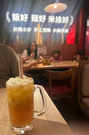 1. **酸菜鱼:** 汤底金黄酸鲜,开胃度满分!酸菜脆爽够味,是灵魂所在。鱼片雪白,量足且滑嫩无刺,入口即化,吸收了汤汁精华。热辣酸香交融,配饭一绝,是暖胃过瘾的必点菜。2. **湖南小炒肉:** 锅气十足!五花肉片煸炒得焦香微卷,肥而不腻。螺丝椒(或类似青椒)新鲜爽脆,辣度直接过瘾,带著湘菜标志性的咸香鲜辣。豆豉和蒜片提香,酱汁浓郁下饭,是地道惹味的湘式代表。3. **巨无霸手打柠檬茶:** 视觉震撼!超大杯量,名副其实的“巨无霸”。柠檬经充分捶打,果肉纤维与汁水迸发,酸香扑鼻。茶底醇厚,甜酸比例刚好,冰爽沁心,解辣消暑神器。手打带来的浓郁风味和满足感,是整顿饭的完美收尾。**总结:** 三道菜一饮,酸、辣、爽俱全。酸菜鱼醇厚,小炒肉火辣,柠檬茶冰爽巨量,组合起来层次丰富,吃得酣畅淋漓,性价比与风味俱佳。…查看更多