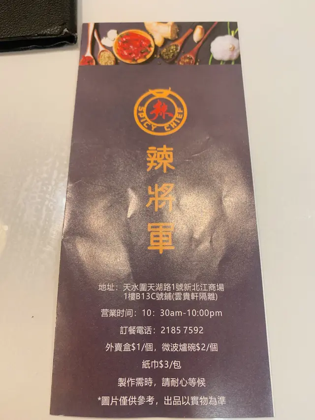 辣將軍 (天水围) 网址: https://s.openrice.com/QrLS0sky500 地址: 香港天水圍天湖路1號嘉湖新北江商場1樓B13C號舖 电话: +852 21857592
