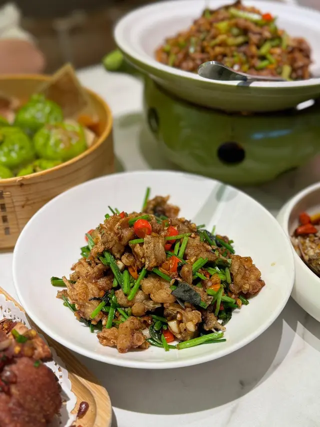 涼拌花甲翡翠醬肉香煎飽熱烘烘醬肉香煎飽,外層軟熟帶芝麻香,內層肉醬香濃