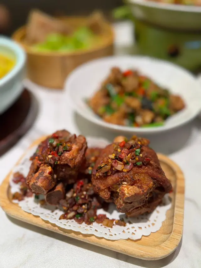 膠原脆皮豬手膠原脆皮豬手以秘製滷水慢煮12小時,口感外脆內糯,充滿骨膠原,食完皮膚滑滑