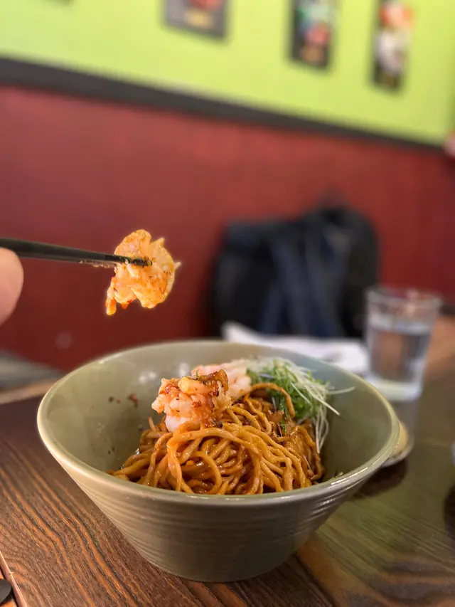 隱藏係石板街一個唔起眼嘅小店,餐牌有唔同類型嘅麵類,都有d新鮮感。第一次來先試下「招牌蝦米辣油蝦球拌麵」:醬汁:醬油 + XO醬 + 蝦米撈埋一齊嘅嘅味道。連埋切得幼細嘅青瓜,撈埋一齊豐富口感。再有輕微恰到好處嘅辣味,幾惹味。麵:麵條粗壯有彈力,有口感,又掛汁。蝦球:有三粒蝦球,彈牙爽口,味道偏淡。整體嚟講,麵條嘅質地最出色,粗壯有口感。醬汁味道係蝦米XO醬,而唔係蝦油嘅味道。味道都OK,但又唔算特別驚喜。佢嘅餐牌都有唔同款式嘅麵類,下次再試吓其他款式。…查看更多