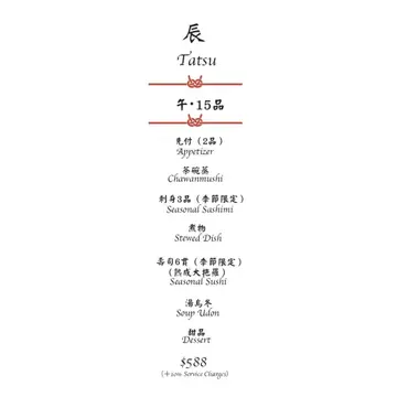 今次去「辰」晚·17品Omakase(2位)🇯🇵.刺身4品🌊有蜜柑鲷🐟龙虾、水八爪鱼、和干草烟熏鲣鱼😍蜜柑鲷有清香淡淡蜜柑味🍊沾上少少芥末同盐🧂风味十足😬龙虾刺身鲜甜,加上龙虾膏🦞不得了😝北海道水八爪鱼🐙配上柚子皮及青柠汁🍋好Fresh💦和干草烟熏鲣鱼🌾鲣鱼烟熏味颇重💨配炸大葱丝,衬托出鱼香😛.先付3品🥢有釜山莹光鱿鱼🦑明太子莲藕天妇罗🍤冲绳水云渍配淮山🪸水云渍酸酸甜甜,好开胃😗.煮物🐠烧鱼肉质幼滑🔥充满鱼油,加上青柠汁🍋🟩令鱼香更加突出💯.寿司6贯🍣有白象拔蚌寿司、炙烧银鳕鱼寿司、池鱼寿司、熟成8个月大拖罗寿司、炙烧小肌鱼寿司、白海胆手卷🍘白象拔蚌寿司同池鱼鲜味爽脆😆大拖罗寿司油脂含量超高,入口即溶😱白海胆手卷🍙香脆紫菜同鲜甜海胆🧡大满足😉.A4和牛丼🍚A4和牛以寿喜烧方式烹调🍲肉质柔软,油香四溢🐄味道咸甜😋搭配日本生鸡蛋🥚大满足👍🏻.渍物,有柚子萝卜🥕腌牛蒡、酸姜🫚.吸物🥣清甜豆腐蚬汤😌.甜品🍮抹茶奶冻🍵抹茶味浓而不涩☺️佐以蜜黑豆作点缀🫘.Cornerstone Sparkling🍾…查看更多