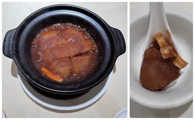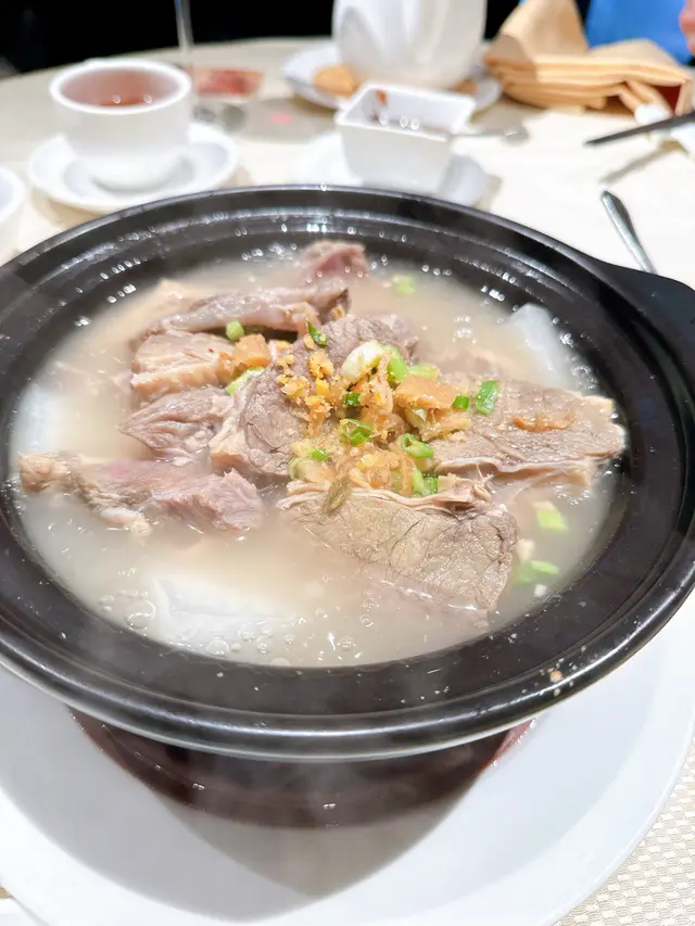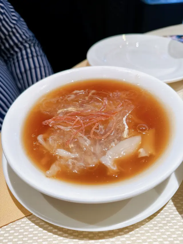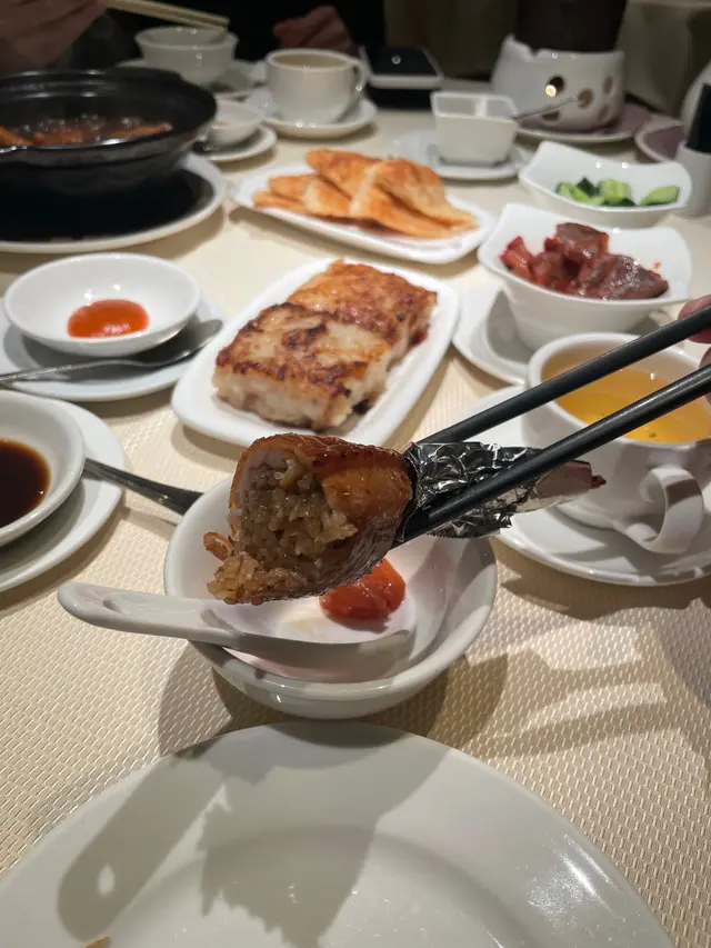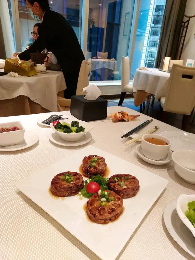 媽咪生日,我選了這間酒樓慶祝,因為無論服務及食物水準都非常高。四個人點左以下菜式:**糯米雞翼** 酒樓招牌菜,賣相一流,味道更是無可挑剔,強烈推薦。眼見每一台既客人都必點,就知名有幾好味!**鵝肝焗響螺** 我本身好鐘意食鵝肝和響螺,當這道菜上桌時,香味四溢,入口後果然沒有辜負我的期待。**杏汁豬肺湯** 在訂位時已經提前預訂這道經典的杏汁豬肺湯。自己在家製作會花費很多時間和精力,都係外面吃算了。湯裡的豬肺白雪雪,十分乾淨,若製作不當會有股腥味。這碗湯除了有很多豬肺之外,還包含了瘦肉、花膠和金華火腿。雖然收費560元,但物超所值!**南乳燒雞** 使用新鮮雞肉,烹調得皮脆肉嫩,實在好味!**籠仔荷葉蒸龍躉** 我個人非常喜歡吃龍躉,魚皮充滿膠原蛋白,因為用了陳皮,讓魚的鮮味更添陳皮的香氣。**是但** 這道招牌是但絕對不容錯過,蛋白香滑,料中更有帶子、鮮蝦和絲瓜,鹹蛋黃等,這道菜也強烈推薦。**流沙壽桃** 因為是生日的緣故,提前訂了四隻壽桃,熱辣辣的流心奶黃味道非常好。**杏仁茶** 杏仁茶是贈送的,香味濃郁,甜度恰到好處。**紫米露** 紫米露也是贈送的,內裡有很多材料,甜度同樣剛剛好。由於前菜的牛展非常好味,所以我要了一盒外賣。整晚的菜餚都非常美味,家人們都十分滿意,最重要的是大家吃得開心!…查看更多