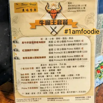 【深水埗区】【农场餐厅】以前细个喺荃湾,见到荃锦中心开咗间好大嘅农场餐厅,不过一直都冇机会试,佢就已经执咗。再之后先发现,本身有嘅几间分店都执晒。听公司一位叫安安嘅老师傅讲,佢哋当年净系收现金唔收信用咭嘅,都几有性格㖞。之后知佢哋东山再起,但系个规模已经大不如前。最近仲有单玩到网上好似有骂战出现,牵涉一啲 YouTube 片嘅,我都有睇涉事短片,系讲到间嘢几唔掂。不过我从来都唔随波逐流嘅,梗系要自己亲身过去体验吓再分享啦。去到发现都几难叫嘢食,原来店员缩晒喺右边𠮶间嘢嘅厨房度。谂唔到食乜,见枱面 menu 有牛魔王套餐就叫个「牛2」食吓,$168 有「红酒鹅肝牛脷」拼「美国 12 安士极级 Prime 肉眼扒」跟红酒汁,有汤仲有维他柠檬茶。估唔到有惊喜,个扒系几好食,所有嘢都几正。不过个红酒汁系败笔,非常难食,成兜意粉唔要得。但佢其他嘢系好食,所以促成咗我二访去食「牛3」,都系 $168,都系入去畀咗钱叫嘢食先,今次系「香草忌廉火箭鱿鱼柳」。本身想拼「极级 Prime 20 安士苏格兰牛肋骨」但佢哋冇所以要返肉眼扒,我仲加 $38 要埋「牛脷」,今次都有汤同维他柠檬茶,意粉就跟香草汁。今次终于系成份都好食,鱿鱼、鱼柳、牛扒、牛脷,啖啖肉又好食,劲满足。我本身预佢可能有啲嘢唔得所以叫多碟牛脷,点知全部都好食,唯有用 $2 买个胶盒攞走,唔好浪费,夹埋 $208 好抵食。讲环境佢真系好一般,感觉好似好罨耷咁,但诚然佢啲嘢食上菜时系干净企理,肉类性价比高,绝对有下次。。。(地址:深水埗南昌街81号地舖)#1amfoodie #foodie #hkfoodie #thatfoodiething #hkfood #food #instafood #yummy #foodlover #tasty #globaleats #tastyfood #foodpics #followforfollowback #love #eat #1am深水埗区 #深水埗 #南昌 #农场餐厅 #牛魔王套餐 #红酒鹅肝牛脷 #美国12安士极级Prime肉眼扒 #维他柠檬茶 #香草忌廉火箭鱿鱼柳 #极级Prime20安士苏格兰牛肋骨 #牛脷 #1am0949 #1ambackup…查看更多
