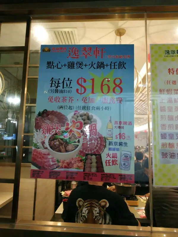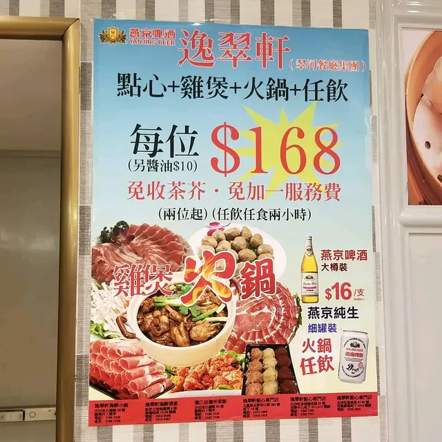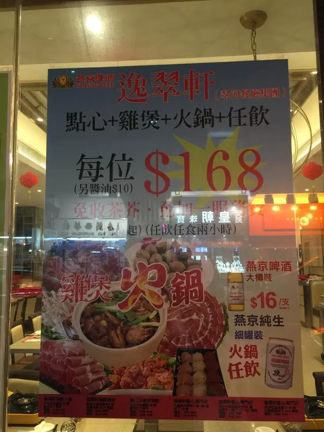 星期五之坐耐D食好D。今日咁啱經過,發現一帶有很多食肆,真係估唔到。被廣告吸引,所以就入去幫襯。從海報中以為點心都可以任食,但原來只有一籠,限定三款,有D失望。另外其醬油又要另加$10,我唔明點解店舖唔直接加入總價呢?點心即蒸,兩款餃漲卜卜,料多,好味,但九菜餃就咸咗D。再上雞煲,雞煲真係好正,辣度適中,好在店舖提供椰汁珍珠飲品,可以解吓辣。雞煲後開始火煱,店舖限定食材,以為一般貨色,原來食材都唔差:有蝦,青口,魚,不同的丸料,豬潤,牛,豬及菜等,如果唔夠,重可以問侍應攞紙再點。最後點了生麵,云吞,水餃及豬肚爽,全部都好食。特別係豬肚爽。可能始終係點心店,食物都是有保證的。…查看更多