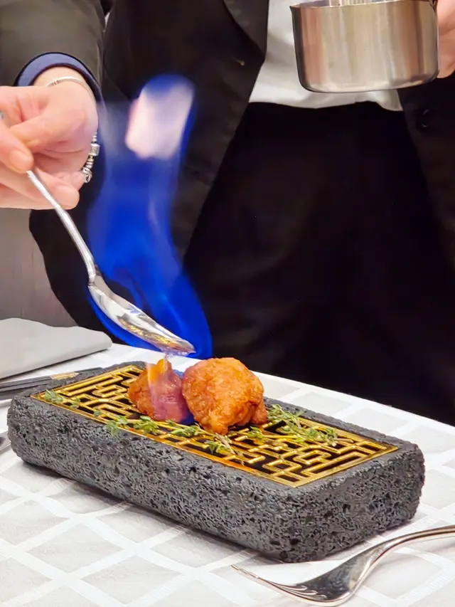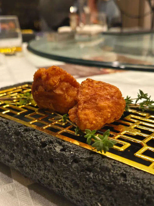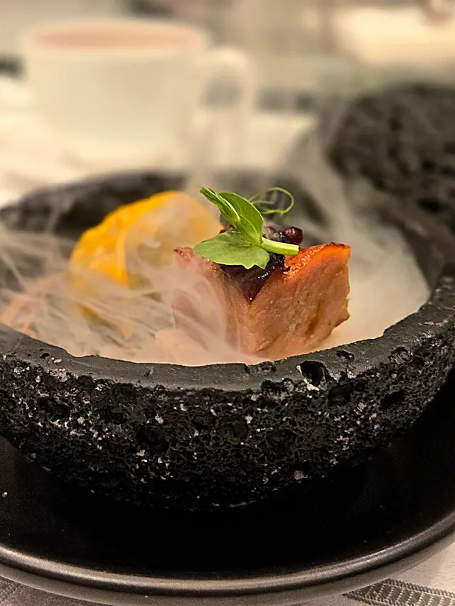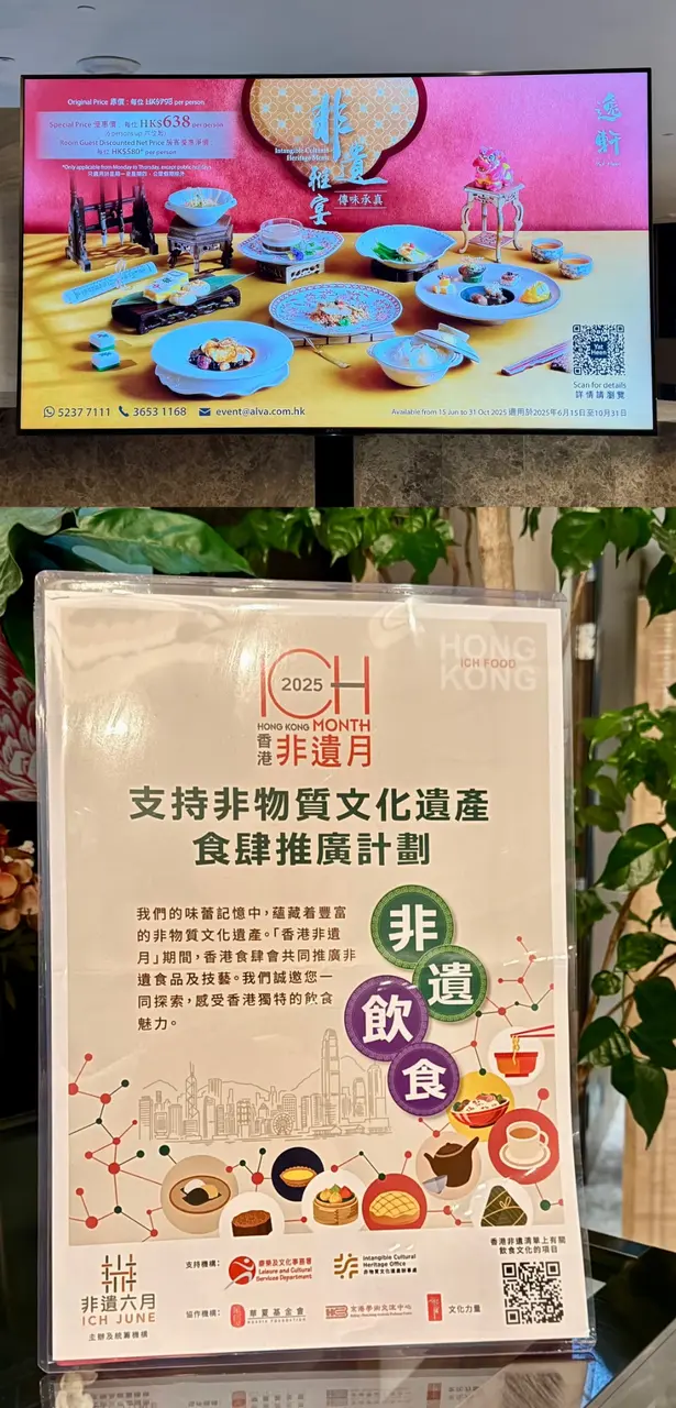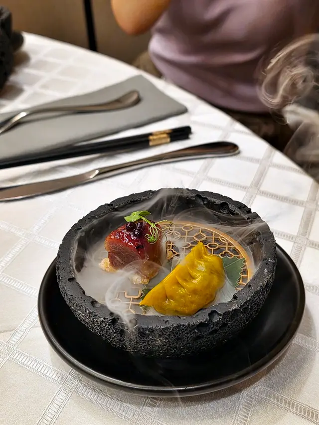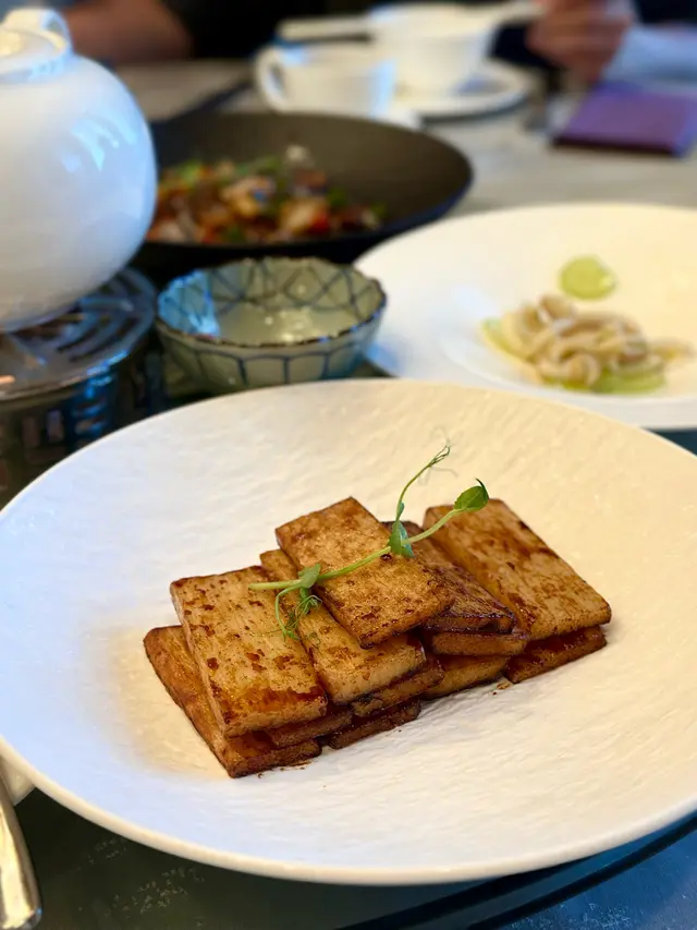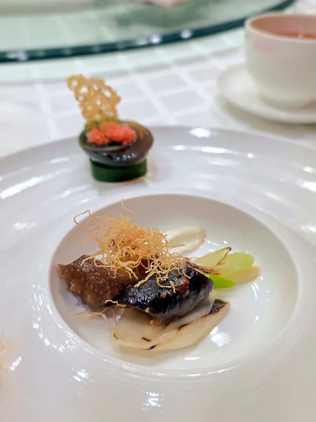 腐乳、蝦醬、蝦乾、點心、奶茶, 一系列充滿香港本土文化氣息的食材, 同樣也被列入非物質文化遺產, 帝港酒店集團區域中式廚藝總監江肇祺師傅與帝逸酒店中餐行政總廚李家鋌師傅合力設計「非遺雅宴‧傳味承真(九道)菜單」, 每道食菜都盛載著相應的製作技藝, 讓我們的味蕾來一趟文化深度遊. 滷醃三品, 吃有次序. 先來墨魚, 其次是皮蛋, 最後是海參. 椒韻墨玉 - 潮式藤椒墨魚吃潮洲菜, 好喜歡吃墨魚片, 這道以傳統潮式滷水滷煮墨魚, 再加微辛辣藤椒汁, 好配搭, 而墨魚又爽嫩, 好好的前菜. 琥珀藏薑 - 子薑尖椒皮蛋. 單單半個皮蛋擺盤精緻, 粉橙色的子薑蓉以秘製醋汁醃漬, 碰上微辣的尖椒碎, 鹹鹹酸酸, 好特別~ 醬香珍味 - 蝦醬蔥燒刺參. 菜式混入蝦醬, 評價可以好兩極, 以蝦醬的咸鮮配海鮮, 海參嫩滑, 非常可口~ 煙燻二品, 一籠兩件~ 分別是籠香玉餃–蒸鴨肉餃子、金縷蜜焰–米通腐乳叉燒. 這個帶著非遺蒸籠及豆品製作技藝. 打開黑圓球, 煙燻效果就像點心在蒸籠般. 以蒸籠把餃子蒸煮, 皮薄餡多. 而叉燒與米通之間有腐乳醬, 意想不到的配搭帶出驚喜, 味道很夾. 翠膽明珠 - 砂鍋菜膽花膠廣東雲吞. 一口大小的「金魚尾」雲吞以豬肉拌蝦而製, 好彈牙! 這並非一般的雲吞雞, 而是以鮮雞、豬骨等熬煮的清澈濃湯, 再加入厚肉花膠, 滋陰養顏. 娃娃菜吸了濃湯, 更顯鮮甜~ 漁港風華 - 避風塘鹹魚茸豆豉煎馬友魚. 超讚嘆大廚以大量蒜蓉、豆酥、麵包糠豆豉、辣椒及瑤柱做出帶有避風塘風味的調料, 甜甜辣辣, 淨吃也好惹味! 肥美的馬友魚加入咸魚蓉及調料猛火兜炒, 香氣撲鼻! 陳滷菌珍 - 陳皮滷水牛肝菌農場雞. 雞件嫩滑, 配以薄切牛肝菇菌、百合、蓮耳、木耳, 少少香氣點綴是陳皮絲, 是平和之中帶點特色. 漁澳風光 - 大澳蝦乾魚肚杞子菜心苗. 好大隻蝦乾而且咬下咸香, 南瓜湯香甜、爽脆蔬菜、竹笙又吸盡湯汁, 吃過剛才的菜式再吃這道, 味蕾有跳入風光明媚的漁村之中. 金炊玉饌 - 脆芋絲臘味蟹肉炒飯. 賣相是有小草地的意境, 幾有創意~ 以火㷫住、鍋內滋滋發響, 所有食材拌勻來吃, 香脆咸香, 好好味~ 說到非遺, 港式奶茶必定榜上有名. 茶啡雙凝是港式鴛鴦茶凍, 一層一層可單獨吃或者三層一起吃, 幾香滑~ 傳統小點 - 麻雀千層馬拉糕、懷舊合桃酥. 「打麻雀」即打牌, 似乎是風假及節慶常備項目~ 這個非遺文化與人類息息相關, 馬拉糕以麻雀造型登場, 立即加分! 這款馬拉糕並非平常酒樓吃到的, 而且夾著奶皇椰絲, 較傳統舊式, 甜度適中~ 而合桃酥好香脆. …查看更多