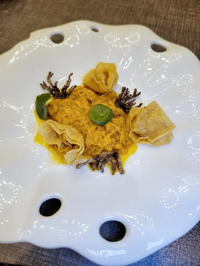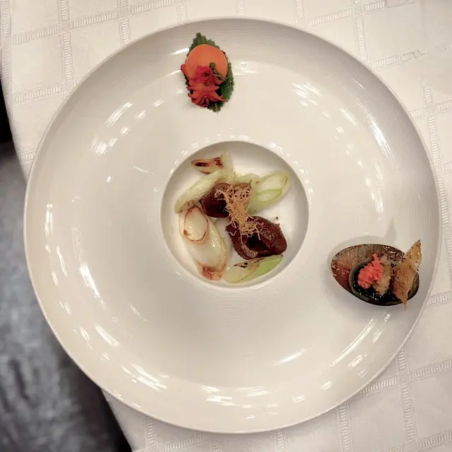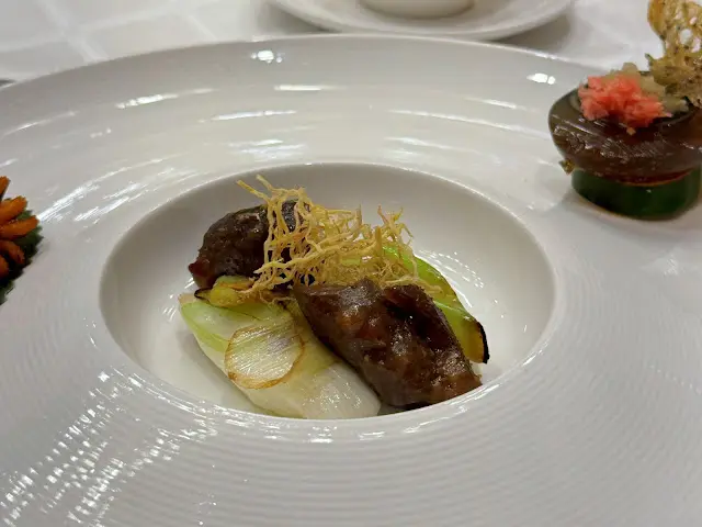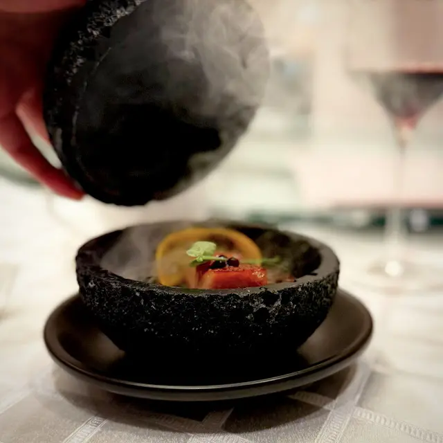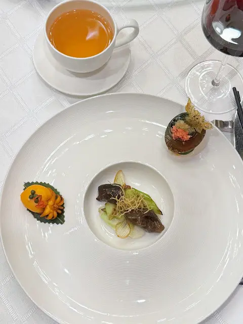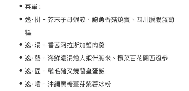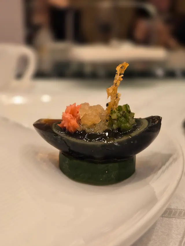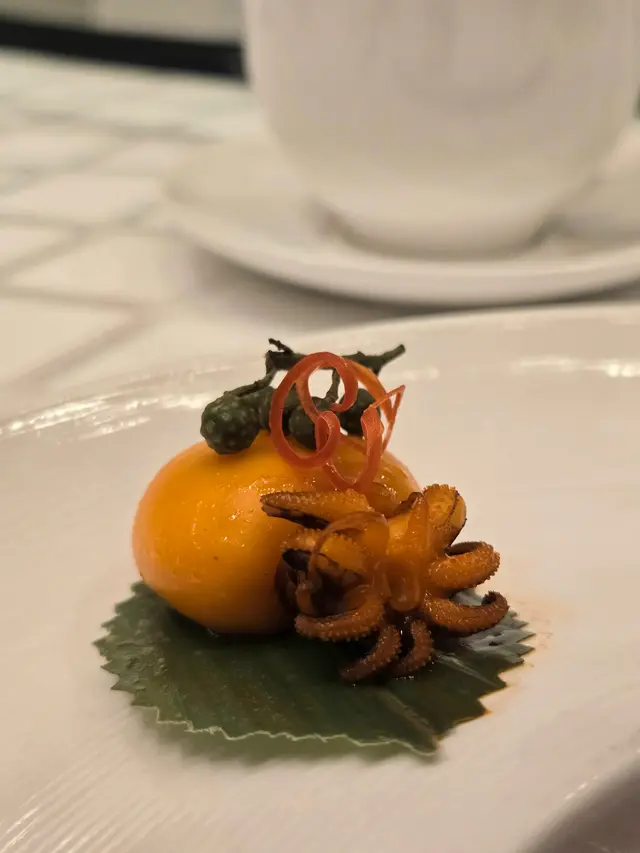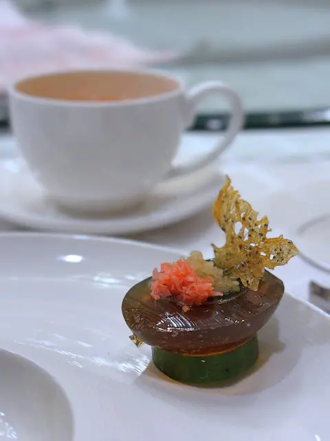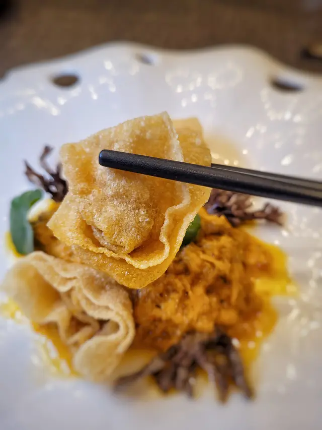 腐乳、蝦醬、蝦乾、點心、奶茶, 一系列充滿香港本土文化氣息的食材, 同樣也被列入非物質文化遺產, 帝港酒店集團區域中式廚藝總監江肇祺師傅與帝逸酒店中餐行政總廚李家鋌師傅合力設計「非遺雅宴‧傳味承真(九道)菜單」, 每道食菜都盛載著相應的製作技藝, 讓我們的味蕾來一趟文化深度遊. 滷醃三品, 吃有次序. 先來墨魚, 其次是皮蛋, 最後是海參. 椒韻墨玉 - 潮式藤椒墨魚吃潮洲菜, 好喜歡吃墨魚片, 這道以傳統潮式滷水滷煮墨魚, 再加微辛辣藤椒汁, 好配搭, 而墨魚又爽嫩, 好好的前菜. 琥珀藏薑 - 子薑尖椒皮蛋. 單單半個皮蛋擺盤精緻, 粉橙色的子薑蓉以秘製醋汁醃漬, 碰上微辣的尖椒碎, 鹹鹹酸酸, 好特別~ 醬香珍味 - 蝦醬蔥燒刺參. 菜式混入蝦醬, 評價可以好兩極, 以蝦醬的咸鮮配海鮮, 海參嫩滑, 非常可口~ 煙燻二品, 一籠兩件~ 分別是籠香玉餃–蒸鴨肉餃子、金縷蜜焰–米通腐乳叉燒. 這個帶著非遺蒸籠及豆品製作技藝. 打開黑圓球, 煙燻效果就像點心在蒸籠般. 以蒸籠把餃子蒸煮, 皮薄餡多. 而叉燒與米通之間有腐乳醬, 意想不到的配搭帶出驚喜, 味道很夾. 翠膽明珠 - 砂鍋菜膽花膠廣東雲吞. 一口大小的「金魚尾」雲吞以豬肉拌蝦而製, 好彈牙! 這並非一般的雲吞雞, 而是以鮮雞、豬骨等熬煮的清澈濃湯, 再加入厚肉花膠, 滋陰養顏. 娃娃菜吸了濃湯, 更顯鮮甜~ 漁港風華 - 避風塘鹹魚茸豆豉煎馬友魚. 超讚嘆大廚以大量蒜蓉、豆酥、麵包糠豆豉、辣椒及瑤柱做出帶有避風塘風味的調料, 甜甜辣辣, 淨吃也好惹味! 肥美的馬友魚加入咸魚蓉及調料猛火兜炒, 香氣撲鼻! 陳滷菌珍 - 陳皮滷水牛肝菌農場雞. 雞件嫩滑, 配以薄切牛肝菇菌、百合、蓮耳、木耳, 少少香氣點綴是陳皮絲, 是平和之中帶點特色. 漁澳風光 - 大澳蝦乾魚肚杞子菜心苗. 好大隻蝦乾而且咬下咸香, 南瓜湯香甜、爽脆蔬菜、竹笙又吸盡湯汁, 吃過剛才的菜式再吃這道, 味蕾有跳入風光明媚的漁村之中. 金炊玉饌 - 脆芋絲臘味蟹肉炒飯. 賣相是有小草地的意境, 幾有創意~ 以火㷫住、鍋內滋滋發響, 所有食材拌勻來吃, 香脆咸香, 好好味~ 說到非遺, 港式奶茶必定榜上有名. 茶啡雙凝是港式鴛鴦茶凍, 一層一層可單獨吃或者三層一起吃, 幾香滑~ 傳統小點 - 麻雀千層馬拉糕、懷舊合桃酥. 「打麻雀」即打牌, 似乎是風假及節慶常備項目~ 這個非遺文化與人類息息相關, 馬拉糕以麻雀造型登場, 立即加分! 這款馬拉糕並非平常酒樓吃到的, 而且夾著奶皇椰絲, 較傳統舊式, 甜度適中~ 而合桃酥好香脆. …查看更多