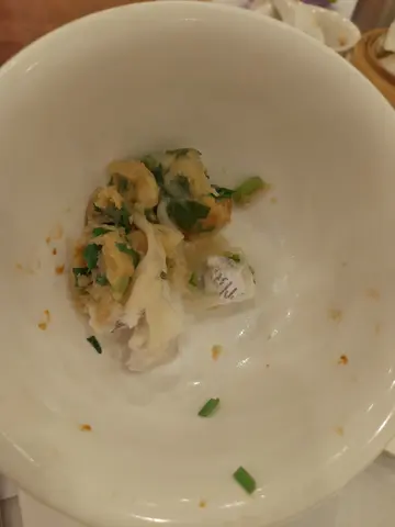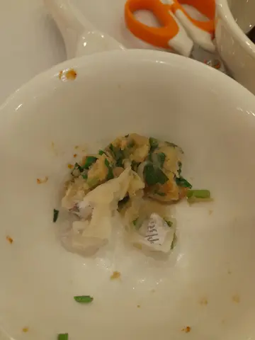 韭菜饺: 裹面食到一角点心纸, 即时冇胃口唔想食