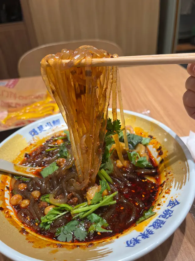 最近去旺角 MOKO 經過內地人氣遇見小麵,這間餐廳朋友也曾經吃過感覺很不錯。這天我們來到,價錢便宜,那就立即入去吃個套餐先。入到餐廳,地方闊落,裝修風格好有特色。餐廳主打這四大招牌系列 : 紅碗碗雜麵、金碗酸辣粉、小鍋冒菜及抄手家族,有辣有不辣,不錯吧。紅碗豌雜麵 $42餐廳招牌菜,必食推介!這碗辣度可選微辣、重慶味、霸道辣或魔鬼辣 ; 吃不到太辣的我,選了微辣 ; 根據指示,把麵條和配料拌勻30秒,肉味香濃,豌豆脆脆,蔬菜翠綠鮮爽,麵條滑身,每一口充滿麻辣鮮香,感受到地道重慶風味美食。脆皮半只雞三件套 $36這個三件套包括有秘制脆皮半只雞+蔥酥骨湯抄手(小份) + 飲品,真的很划算。半只雞份量都不少,皮脆肉嫩,內裡有肉汁,不會乾身,抄手肉餡鮮嫩,熱騰騰的湯底,清甜有肉骨香味,套餐飲品可選擇凍檸檬茶,免費轉配茉莉凍凍酸梅湯及滋潤八寶茶,另+$1 轉琥珀冰粉、+$4 轉白玉厚椰乳。白玉厚椰乳,椰子味香濃,口感順滑潤喉。超值三件套 F3 套餐 $32這套都是下午茶餐,蔥油拌麵+雞排+飮品,亦都很超值。蔥油拌麵可選辣或者免辣,朋友怕辣就選免辣,拌麵份量好足,一大碗滿滿的,把蔥油和醬汁拌勻一起吃,調味恰到好處,香氣撲鼻,雞排外脆內嫩,裡面不乾身,酥脆可口,很美味。安格斯牛肉串 (3串) $19牛肉一口一粒,吃起來很方便,肥瘦均有,嫩滑有肉汁,配搭微辣的調味粉,特別惹味。爆漿豆腐串 (2串) $17覺得這款非常好吃,外層香脆,帶微微辣味,一咬落去真的有爆漿感,豆腐中間好嫩滑,豆味濃郁。白玉厚椰乳 (+$4)套餐飲品轉配白玉厚椰乳,椰子味香濃,口感順滑潤喉。茉莉凍凍酸梅湯天氣炎熱,點了杯茉莉凍凍酸梅湯,口感清新,酸酸地,好開胃。…查看更多