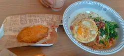 这间面店在荃湾已经开咗好耐、小店早餐超正!order左皮蛋瘦肉粥配油条,爆浆包同肉包,个肉包好好吃👍仲有免费豆浆添,另一款松脆鸡扒葱油面配鸡蛋,加上有免费豆浆无限添饮。环境干净,啲职员又好好,人多都唔觉好挤,好适合早晨嚟叹番吓。最紧要价钱一啲都唔贵,比一般连锁嘅快餐店重要平、抵食😋