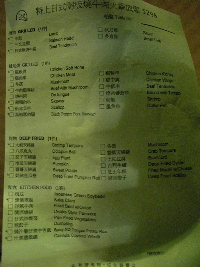 剛入去既時候, 服務環境都OK, 可能因為時間太早, 我地book 左 6:30食.一黎叫左刺生, 見個賣相都幾好, 諗住今次冇簡錯啦.....點知惡夢就開始啦....1) 點左既食物成日都唔出, 成晚就係坐響度 tick 野食, 等野食. 點十樣野, 只黎3, 4 樣. 未試過食放提要食成3個幾鐘. 2) 服務好差, 當日有一個男侍應, 見佢成日就企響電腦前面, 叫佢又唔理, 台面既野又唔執. 我地問佢火鍋料係點計, 例如冬菇寫"1" 究竟係一份定一粒, 佢用好不情願同不尊重既語氣同表情答我地..."冬菇一舊咪一舊lo"....我地只係唔想浪費食物而問清楚, 但換來咁既服務態度. 最後個男侍應唔知因為事響食客面前大大聲發脾氣, 唔係一次, 佢發左幾次, 最尾發脾氣走左, 冇出現過. 另外仲有一位男侍應, 但佢一直都只見佢企埋一面冇做野....全晚都只係靠一班侍應姐姐...辛苦晒3) 當晚環境嘈都癲, 唔知點解成餐廳都係小朋友, 係得幾歲個d, 我以為自己去左兒童樂園........4) 我地個晚食放提火鍋加陶板燒, 點知D牛肉細到離譜, 每一塊都細過干炒牛河D牛肉. 而陶板燒既生料好少, 得牛同豬.....早知唔加一舊水玩陶板燒...太無謂喇.5) 火鍋...個蕃茄湯底反而有驚喜, 都OK. 但生料都係唔多選擇, 我地tick 既野, 同黎既野食完全唔同......6) 刺生, 燒物個D冇咩特別, 亦唔可以話好食.總結....HKD298 plus 10% per head, 咁既價碼, 非常唔抵. 論食物, 價錢, 服務其他日本放提好好多. 再加上呢度跟本冇服務, 仲要受氣又浪費時間, 食到, 肚氣....Black listed....冇下次 查看更多