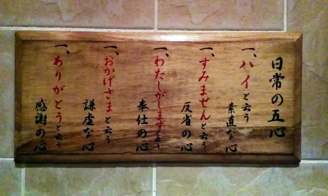 對不少人而言,放題是一次個人食量的挑戰。店子燈火通明,四周桌子杯盤狼藉,真有點殺戮戰場的味道。去過不少日式放題,都是撐著肚子離開,說不上很享受。今次跟表弟團購馬拉松式放題,去的是鄰近上環信德中心的遊食吟釀居酒屋,除了食物和環境令人滿意,還有遇上一個意外驚喜,改變了自己對放題的看法。遊食吟釀店子不算大,裝修以黑色為主調,容易讓人放鬆下來,進入用餐的心情。我們六時入坐,看著人流漸漸增加,不少像是附近的上班族。服務員就眼見的幾名,但下單、上菜和添水的效率都很高,態度也殷切,令人吃得舒服。由於放題時間較一般的長(3小時),我們希望多試不同款式的食物之餘也能好好品嘗,避免暴飲暴食,且是食而不知其味。先叫了沙律類,除了中華沙律和味付螺肉等常見的日式小食,也有韓國泡菜,都爽口但調味比較重。主打的魚生刺身類選擇齊全,份量多,鮮味度不過不失。值得一提的是醋飯做得很不錯,口感軟滑,黏而不膩,喜歡壽司和手卷的朋友不妨試試。相比魚生類,這裡的燒物做得更為出色。當中又以燒雞翼和牛柳最棒,外脆內嫩,羊架更是吃過中最厲害的:微微燒焦的表面,被薄薄的脂肪包著,在連結之處輕輕施力,骨和肉已經應聲分離。一口咬下,肉汁在口中飛濺,微微的騷味擴散開來,妙不可言。兩人一連幾塊停不了口,高呼:「OISHI!!!」我們使用的團購券有兩客贈品,鵝肝麵包和芝士生蠔,都是菜單沒有的。還試了可以自選配料的日式火窩。不過,此時大家的戰鬥力已經消耗得七七八八,所以都只點了青菜,中和一下就鳴金收兵了。想不到,當晚最精彩的一刻在吃過甜品後,上洗手間時才發生。小解的時候,視線被尿兜上的木牌吸引了。抬頭一看,上面寫著「日常之五心」,分別是「素直之心」、「反省之心」、「侍奉之心」、「謙虛之心」和「感謝之心」。不過是很尋常的日式字句,在這個地點看到確卻是意想不到,於是不多拍照的我也引不住拿出手機。回家後,除了回味吃過的,這些字句也不斷在腦海翻滾。是的,它們都平常不過,但能夠每日保持這五種心境過活的,又有多少人?別說五樣,要真正做到一樣已經很不簡單吧!我不敢也不會指望自己看過這個牌子就能有什麽領悟,這是持續一生的修行。我只希望,自己每次出外用膳,都能夠警惕自己心存感謝:感謝自己有餘裕一飽口福,感謝食店為自己預備食物。滿意與否,都是福分。燈光柔和,時間悠長,從容不逼的用餐,原來放題可以有另外一種享受方式,不一定要拼命戰鬥的。這是我吃得最久的一次放題,有興趣體驗和式慢食的,不妨考慮一下馬拉松放題哦!查看更多