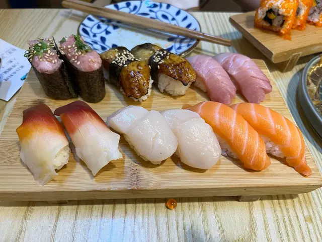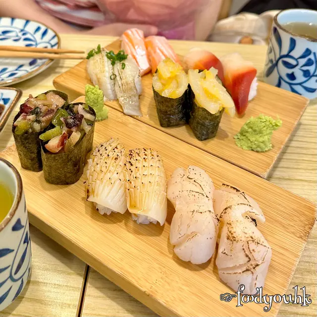 地道日本餐廳,小店裝修服務好刺身🐠呢到每日都有時令新鮮到嘅魚刺身,如果想知有咩新鮮魚絕對可以WhatsApp佢哋,問吓佢哋今日有咩選擇 今次小編叫左笛鯛同金線鯛,佢切得好薄刀功好勁,食落去真係好新鮮,再點佢個酸酸柚子汁,真係帶出魚嘅鮮味🤤自選壽司🍱三文魚,帶子,火炙左口魚,鰻魚,蟹籽,魷魚壽司 每一款壽司飯都係適中,刺身亦都好新鮮,特別推介火炙左口魚,食落去入口即溶,城鎮如香油喺個口中,呢個係必叫嘅壽司🤩蟹籽沙律 🥗滿滿嘅蟹籽配上沙律醬,再加埋切好一條條好友嘅青瓜絲同蟹柳,絕配🤣厚燒玉子呢個真係好厚好足料,會見到一層層嘅玉子,再加上食落去好滑又唔會好膩😍查看更多