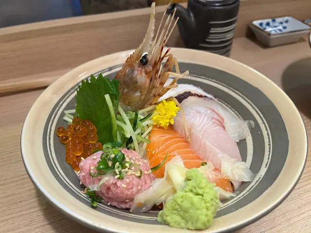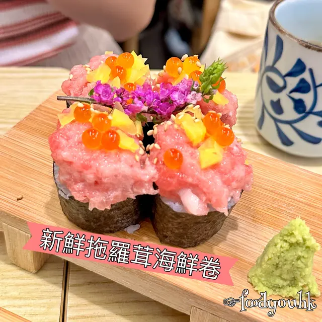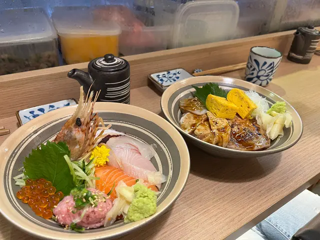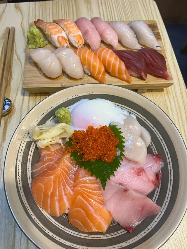 🤸🏻極上魚生丼 $128三文魚、油甘魚、帆立貝、八爪魚、鯛魚、吞拿魚蓉、三文魚子、牡丹蝦一次過食到咁多款刺身啱晒選擇困難症患者(。•̀ω-)最正係帆立貝、吞拿魚蓉帆立貝肥美吞拿魚蓉唔腥(我平時麻麻吞拿魚蓉,今次都覺得好食)八爪魚唔韌ʕ •ᴥ•ʔ牡丹蝦略嫌唔夠新鮮三文魚可以再肥美啲❤️‍🔥火炙魚生丼 $98好多款魚生,三文魚好大塊(⁎⁍̴̛ᴗ⁍̴̛⁎)🦆焦糖鵝肝壽司 $42我係為左佢而嚟真係好肥美(-´∀`-)充滿油脂香(˶‾᷄ ⁻̫ ‾᷅˵)表面仲有燒過,有層脆脆焦糖但略嫌唔夠熱但朋友嗰件燒過龍,有啲苦查看更多