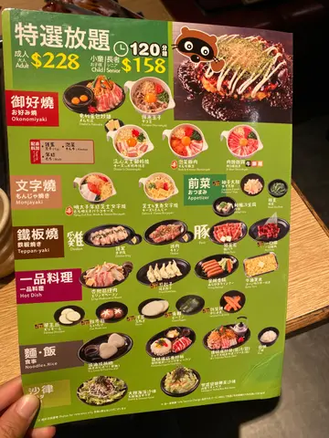 明太子年糕芝士文字烧因为看到平日午市放题最便宜的只要148, 再加一服务费,所以难得放假,所以来一试最后选了星期一至五限定的「严选放题」, 因为有牛食餐牌也有教客人如何烧有餐牌介绍如何烹调不同的烧法味道上没有可评之处,只让大家看看不同烧的样子1) 明太子年糕芝士文字烧2)𫠒鱼玉子御好烧𫠒鱼其实好少3) 奄列蛋包炒面不推荐4)烧熔芝士御好烧流心芝士个款没有小份版5)明太子年糕芝士文字烧重覆第一款, 因为好像第一次烧的方法有误可加配的烧物这个套餐包的肉类前菜饭面类香葱紫菜温玉饭饭是饱满的珍珠饭葱和酱油也足够只是溏心蛋有点过熟和其紫菜淋了盐味牛油乌冬乌冬味爽滑没有怪味,弹牙调味也很好只是好奇,乌冬是冷的,如何可令其牛油溶化呢甜品不好吃, 太饱的话可以不要吃…查看更多