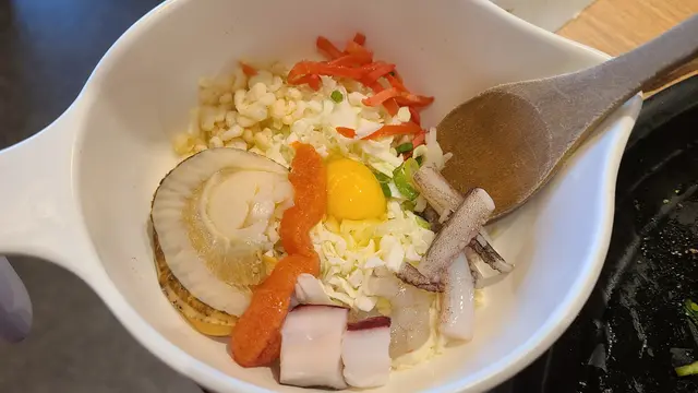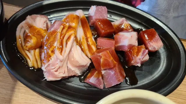 - 海鮮拼盤 (蝦,帶子,魷魚)份量比較少,煎完都好爽口。- 雜錦燒肉拼盤 (牛皮腱,雞肉,1cm厚切加拿大豬腩肉)全部肉已經調咗味,主要都係黑椒,而且係冇其他醬料,比較失望。其實,都係滿足 DIY 願望,有得玩,有得食,已經好開心。不過,員工比較少,有時唔肯定點做,就揾唔到人問或都幫手,同埋冇其他醬料提供。…查看更多