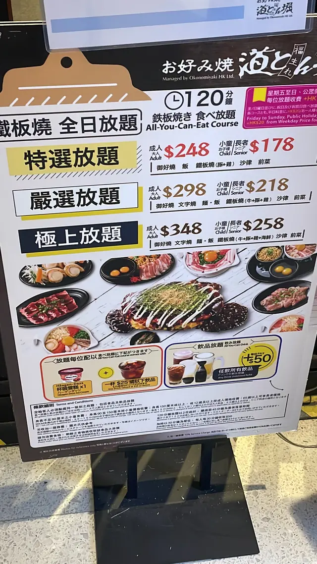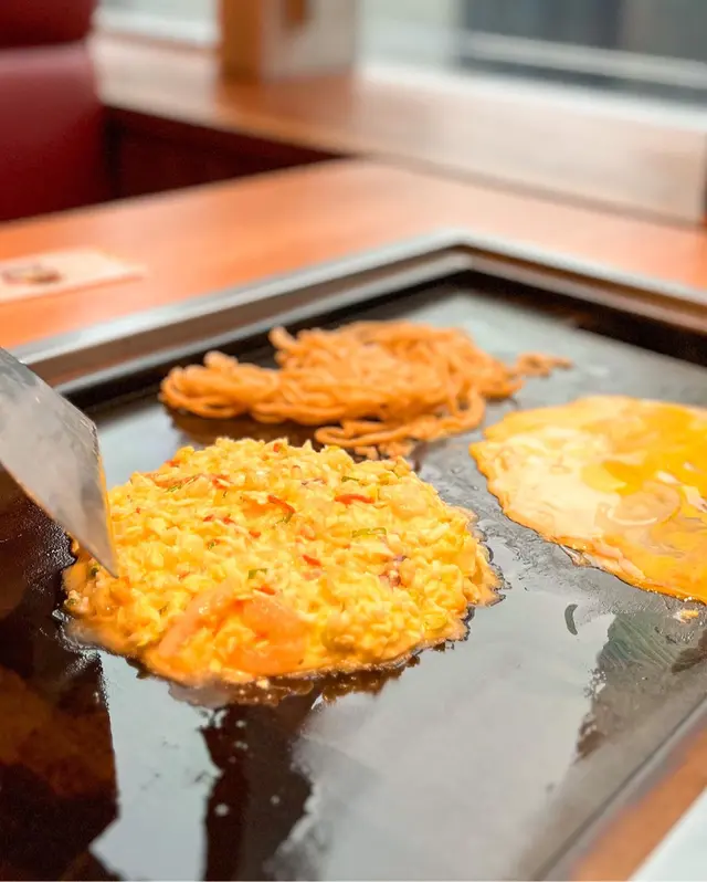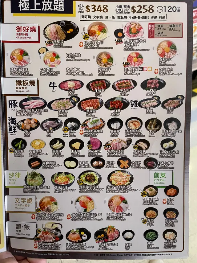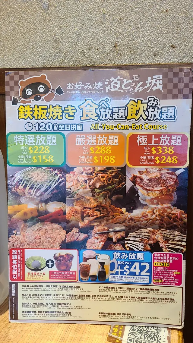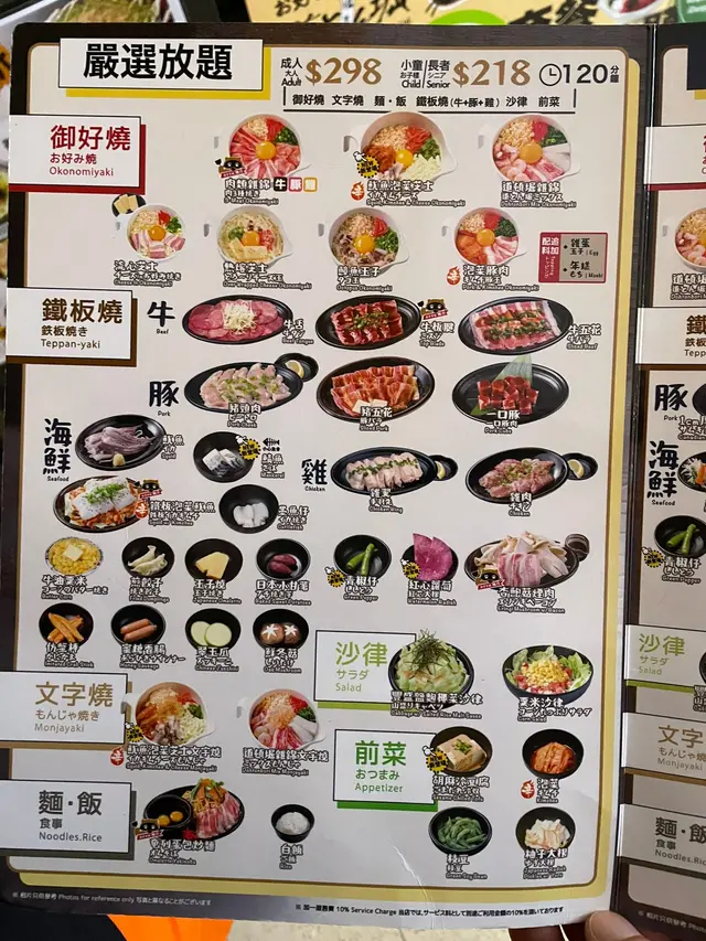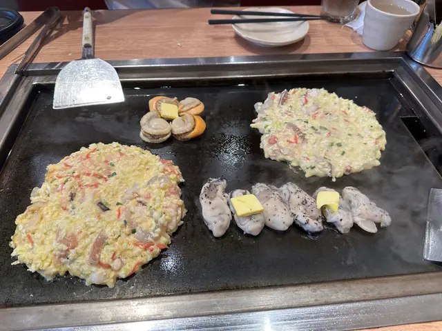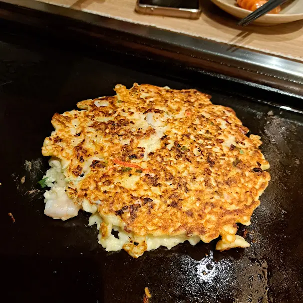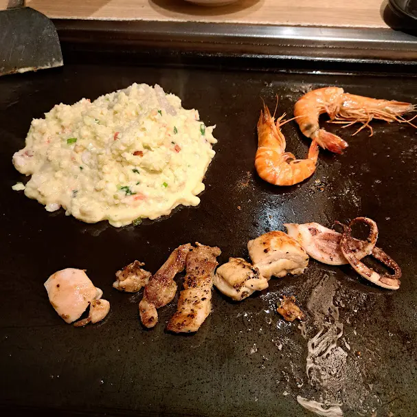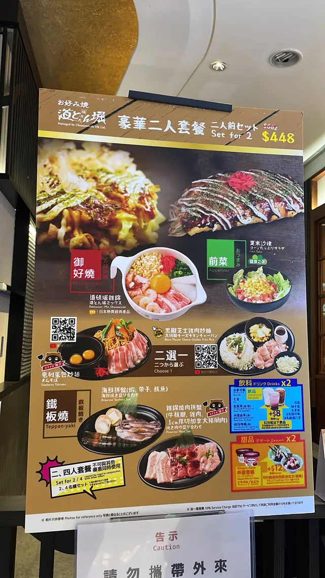 叫咗個豪華二人套餐,都包咗好多野食,沙律,御好燒,海鮮燒肉拼盤等,全部都要自己 DIY。- 道頓堀雜錦御好燒最期待既菜式,材料已經調好曬,可以跟製作教學去整。其實都係用計時器計時,夠鐘就反一反,最後就加啲醬油。出黎既賣相,味道都唔錯,又好玩。- 黑椒芝士雞肉炒飯依個要靠自己,冇教學,不過都係見熟就加野落去,撈一撈。鐡板炒飯,望落真係好勁。