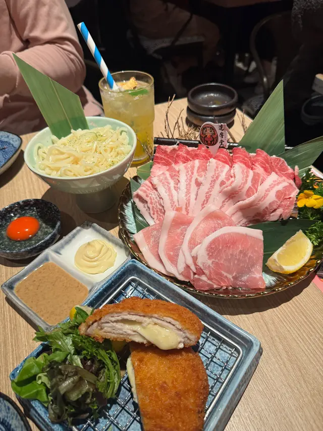 同朋友去咗旺角呢間「達摩」,一入店就感覺好似去咗日本!達摩主題日式餐廳•日系風格裝修🇯🇵設有達摩神台、打卡牆及窗外街景打卡一流達摩公仔擺設,成個環境好有feel~二人前壽喜燒套餐由頭到尾都咁正!🐙【醬漬螢光魷魚】鹹鹹哋又鮮味,魷魚爆膏嘅口感好正,送酒一流!🔥【辣味帶子裙邊】帶點微辣,食落爽口,好開胃🐖【豚肉盛盒三款】✨麥小町豚腩片 - 油花好靚,輕輕一灼就食得,豚味好香✨宮崎米豚里脊肉 - 肉質超嫩,食落有淡淡米香✨伊比利亞黑豚梅花肉 - 高級黑豚肉,有淡淡果仁香,好特別🥬【蔬菜盛合】日本大蔥超甜,豆腐索晒湯汁好入味🧀【芝士吉列豬扒】外皮炸得好脆,入面芝士流心,邪惡但好好味!🍜【稻庭烏冬】滑溜嘅烏冬掛滿壽喜燒汁,加隻蛋一齊食完美🍍【沖繩海鹽菠蘿梳打】菠蘿味清新,海鹽帶出甜味,好解膩🍇【特調巨峰提子梳打】提子味好濃,仲有果肉係入面🎂【北海道抹茶蛋糕】抹茶味香濃,唔會太甜,完美結尾🩷甜品碟上寫上祝福字句,仲會有神秘木箱,儀式感瞬間滿滿🎎 🥨全港首推日式生日祝福畫碟服務需提前預訂三款豚肉各有特色,由濃味到清香一次過試晒,呢間真係會想再encore!建議大家記得book位啊~👘…查看更多
