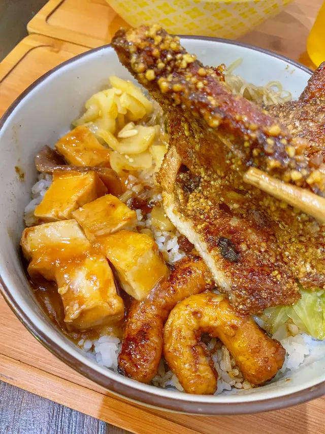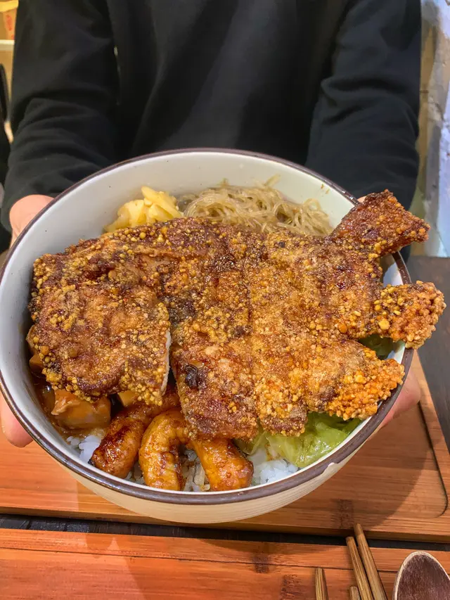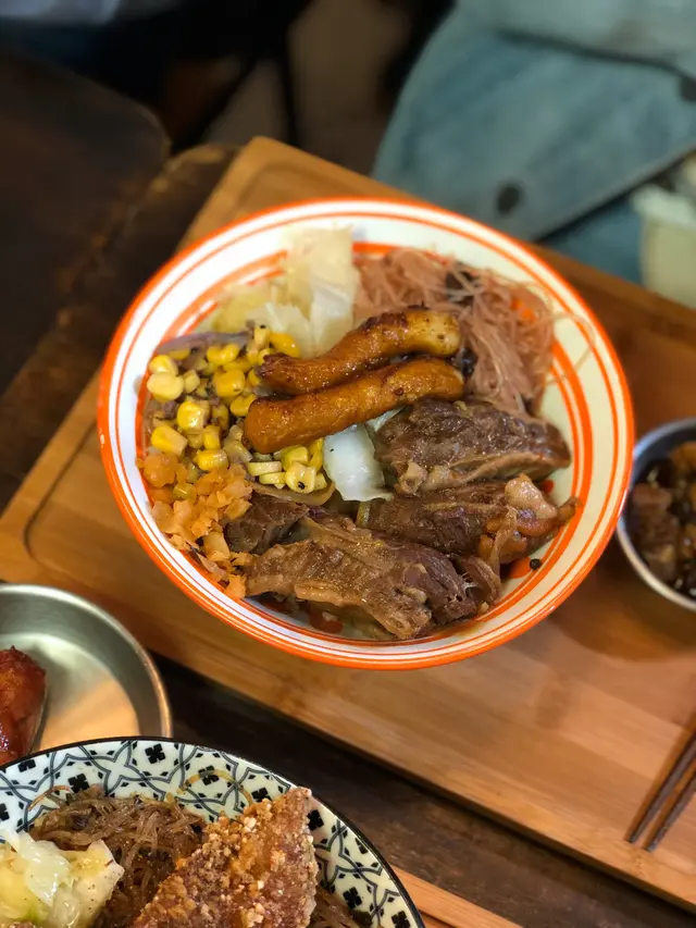 呢間新嘅主打台式便當嘅小店長期都大排長龍,雖然鋪仔細細有啲逼,但係嘢食真係好有誠意,便當入面有一塊勁大塊嘅豬扒,豬扒炸完再沉入滷汁,所以食起嚟香口得嚟都好惹味,而且佢仲配上咗幾款配菜,非常豐富同飽肚!不過如果佢可以好似台式火車便當咁將飯同配菜分開,就唔會整到啲飯太濕啦。This new small restaurant specializes in Taiwanese bento. The braised ribs bento came with a huge pork chop and 5 different side dishes. Overall, the food is extremely hearty and home-like!…查看更多