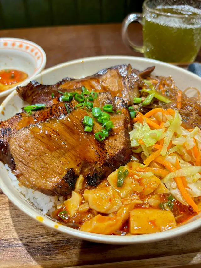 返香港咁一定要去我嘅最愛台式料理打下卡喇💛不過灣仔店舊年啱啱開嗰時試過唔係好理想中間又有朋友complain話食物質素唔似預期🥲所以今日其實都有小小擔心?唔想自己心中嘅no.1跌落神壇吖🫣一人食嘅好處就係唔需要點等位😃嗌咗以前未試過嘅【期間限定】蔥燒豬頸肉便當(少飯)+滷溏心蛋白提花壇翠玉(0糖常溫)餐食同嘢飲都好快上🥹睇到肉飯同配菜都好齊整頓時開心👏豬頸肉厚薄適中有五大片🖐️入口夠煙韌帶少少焦香配菜個人覺得少少鹹但個個都好好味😋(如果撈飯食應該可以balance到但我為咗科學用餐?要菜👉肉👉飯所以齋食配菜就覺得會鹹咗d😂)滷蛋記得以前有半個係便當入邊包括咗?而家要另外加不過都好食嘅(健身減肥人為咗食夠protein😂)本身對個茶其實都冇好大期待?因為我走糖走冰估唔到都好飲喎😃微酸有茉莉花茶嘅清香又有少少回甘好清爽又健康嘅感覺🥹店員大部分都好後生好快手服務質素都唔錯overall今日食得都好滿意更開心自己鍾意嘅地方繼續係no.1🫶…查看更多