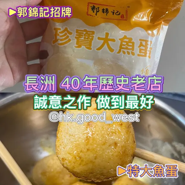 長洲 40年歷史老店😍誠意之作 做到最好🤩地點:長洲呢一間喺長洲已經超過有40年嘅歷史🥰用心製作😛希望會係用最優質嘅食品比客戶🥳呢一間舖頭其實最主要係做一啲傳統食品😋例如雞仔餅😛棋子餅😝等等唔同嘅小食當中亦都會推出埋有關嘅糯米糍🤩仲有各款唔同嘅口味🤓最重要係設立自己生產嘅廠房😎食用比較安全🥳長洲大魚蛋$45 (7粒) - 每因市場價格而唔同- 通常去長洲🤩一定會是佢嘅大魚旦🤩但通常都需要大排長龍😛今次嘅魚蛋比一般大三倍🥳好似成日乒乓波咁🤓用來做早餐或者小食一流🥺魚蛋表面會好似金黃色㗎😗入邊會有比較彈牙既魚肉🥳勁有魚既味道😙比較好食彈牙😋入邊仲會附上豉油同埋辣椒醬😗真係值得一試地點:長洲北社街46號地下香港名稱:郭錦記@kwok_kam_kee 好去評分🎖(5個👍🏻為最好)- 環境:👍🏻👍🏻👍🏻👍🏻- 服務:👍🏻👍🏻👍🏻👍🏻- 價錢:👍🏻👍🏻👍🏻👍🏻👍🏻- 推介:👍🏻👍🏻👍🏻👍🏻查看更多