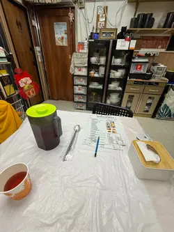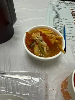 作为素食素食者好多年,听过哩间好耐,一直未有机会黎,今日黎开尖沙嘴,发现好近,就一个人上黎试试。地方真系唔容易揾,好神秘,好彩见到有blogger 介绍地方先揾到。开门都是佛教摆设,唔系佛教徒可能未必钟意。家庭式感觉的台凳,2点几黎到有两台客人,随便坐下有位姐姐招呼你,比张纸你落单。叫了 酸辣干捞金边粉,配素鸡,好快上菜,午餐$60,有汤系冬阴功,加钱有饮品。糖水都系自助。冬阴功好多料,香料蔬菜菇等等,不油腻,几好饮。卖相系唔错的,但一食落去,一堆素?肉松,唔知咩味,面痴埋一堆,好奇怪,加辣酱就得辣味,食食吓发现入面好多芫茜,就更加中伏(哩part系个人口味问题)⋯素鸡同平日素菜舖食嘅有啲唔同,都系豆腐制,外皮脆脆地,唔算太多豆香,不过都ok啦。食食吓隔离台呀叔自己去较细咗部冷气⋯好热㖞有无咁自助然后另一位客人去完洗手间冲出黎望住我同呀叔话冲唔到厕⋯ 咩事 (呀叔叫佢揾店员,然后发现系佢按太细力⋯)可能系口味问题/唔识叫嘢食,又真系唔系好顶得顺咁「家庭式」嘅地方啦,我都唔系好食得完,决定埋单走人。点知,店员以为我系另一台4人台客人,话$280?!跟著先发现系睇错(得三台客咋㖞)仲有好唔环保,好多胶/纸用具⋯试过一次就算啦,唔会再黎