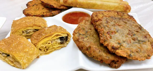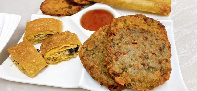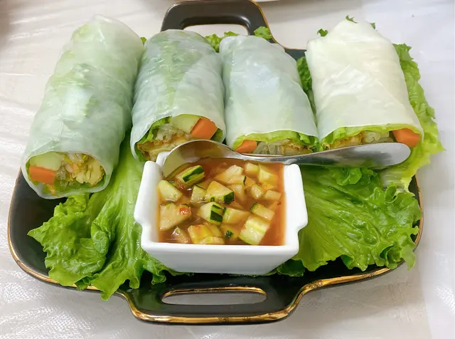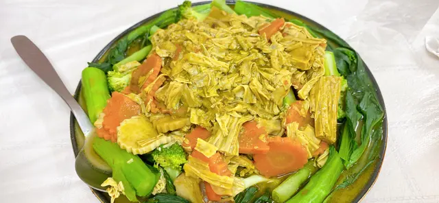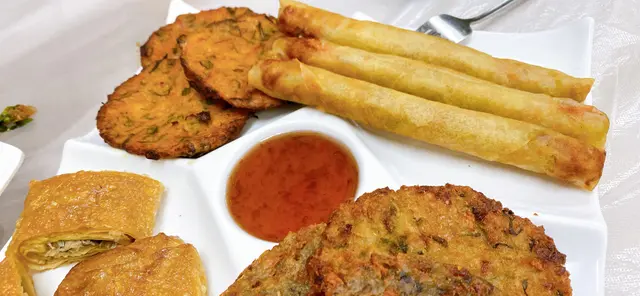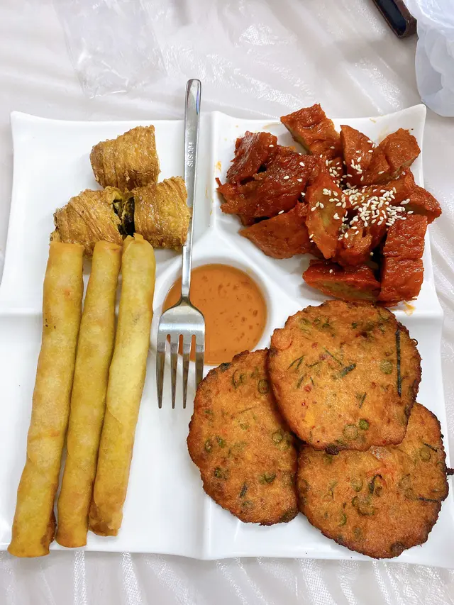 四個人 叫了叉燒飯 素鹹魚炒芥蘭飯 新鮮菠蘿炒飯香葉素肉碎炒飯 午市去每位60 跟冬陰公湯 和紫米露甜品 價錢抵得沒話說 以素食來說 食物非常好吃 我個人比較推介素鹹魚炒芥蘭飯 環境也相當乾淨 冷氣夠 已尖沙咀如果忽然想吃素食 確實是一個非常不錯的選擇 我個人覺得叉燒飯 有點像外面的素叉燒 就不是我最喜歡的類型了 而其他泰式食物 則很有泰國風味 相當不錯 到最後加了一個椰汁西米糕 也非常好吃 可以一試 簡單來說 會再過來吃 員工也有禮貌 雖然只得一個人 但上菜都是十分鐘內的事