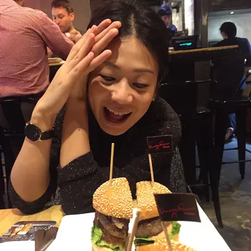 中午我食过佢个汉堡包,块包有比心机烘过,牛肉juicy