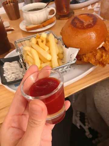 一入去觉得环境好舒适,店员Nice叫咗洋葱汤、极脆炸鸡汉堡配黑松露薯条、洋葱汤、朱古力挞洋葱汤好浓郁,好多洋葱,正嘅!极脆炸鸡汉堡配黑松露薯条好大块鸡扒,外皮真系好脆,鸡肉嫩滑juicy个包都好软熟,加埋沙律菜、蕃茄,成件事好夹黑松露薯条薯条有少量调味,朋友觉得要再加盐同店员拎咗啲盐佢哋都好Nice,而且畀咗好多盐我觉得ok,正常发挥黑松露酱有淡淡黑松露味,不错!朱古力挞浓郁嘅朱古力味,配Americano 系正嘅另外店嘅理念都欣赏嘅成为大家嘅邻舍,以爱还爱,让大家有个舒适嘅聚脚点今次去主要系想试吓啲食物,同friend 谂吓喺𠮶度搞小聚会嘅可能性会回头😉…查看更多