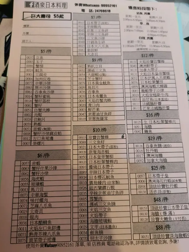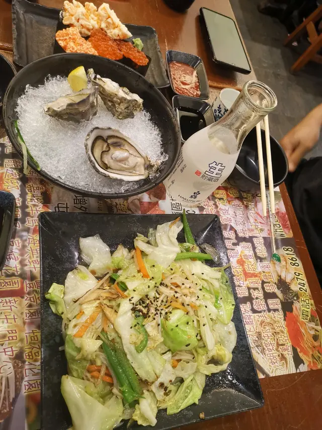 今日同朋友去左一間於元朗的酒泉日本料理,依間餐廳都好耐歷史了,裝修比較舊,好有老店嘅風格,我地叫左甜蝦,吞拿魚腩,左口魚群邊,帶子壽司,油甘魚壽司,象拔蚌壽司,及海膽壽司等、壽司口感不是太新鮮,冇味,唔爽,攞到埋黎已經暖暖地,仲叫左軟殼蟹手卷、這個味道比較正常,紫菜都仲脆嘅,另外串燒牛脷就比較硬,冇乜味,芥末芝士焗生蠔,太多芥末,好辣,蓋過晒芝士同蠔味,懷疑係d蠔,唔太新鮮,要用芥末去蓋過佢,d蠔又細隻,蟹子沙律(一人前),蟹子都算多,下面有少少蟹柳,但份量唔多,味道一般,海老什菜天婦羅好大碟,但係完全無味,兩隻炸蝦,一陣雪味,其他9件都係蕃薯同茄子,無其他蔬菜類,大大舊食到唔想食,其實除左海膽壽司及軟殼蟹手卷叫做過得去外,其他都好難食,十年前食都幾好食,依家好難食,唔會再去 ><…查看更多