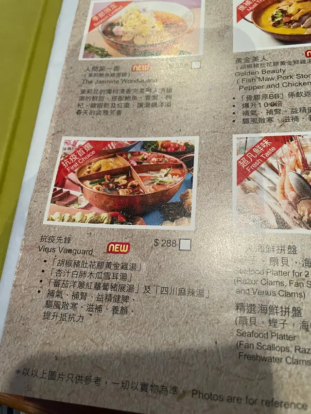 如果打算去吃景,而不介意食物質素和服務的話,可以去試下。見有好多正評所以去試下,失望而回。服務態度,和食物質素,以兩個人食左 $1700 黎講,絕對不值。湯底是花雕醉雞鍋($168)無酒香味二人海鮮拼盤($398)更是令人失望(蟶子 ok, 扇貝一般,果四粒細細蜆,兩隻瘦弱的蝦就堅失望)牛拼($768)味道一般,不值這個價菜拼($78)不過不失埋單二人連醬料,飲品,其他,加一共$17xx我地唔飲酒,埋單覺得伙記面黑黑。P.S. 由於沒有放上其他物品比對,事後看附圖好像還可接受,大家自己衡量😞…查看更多
