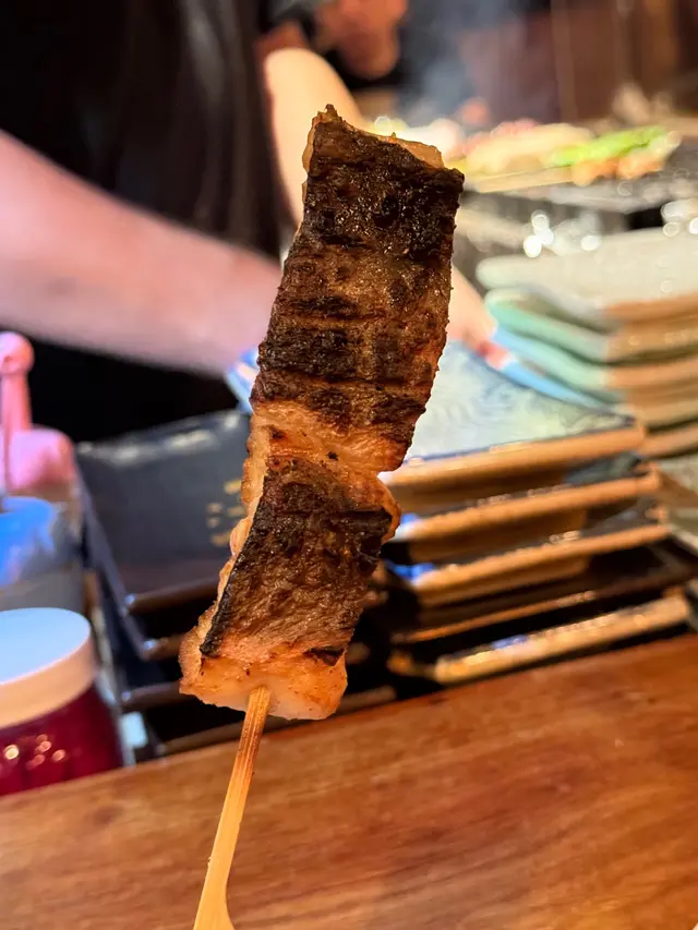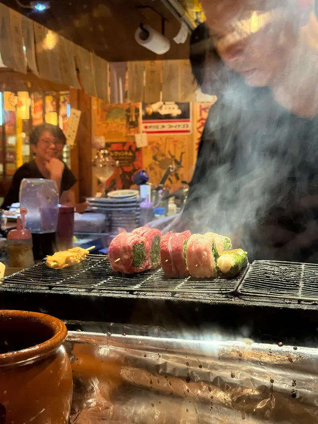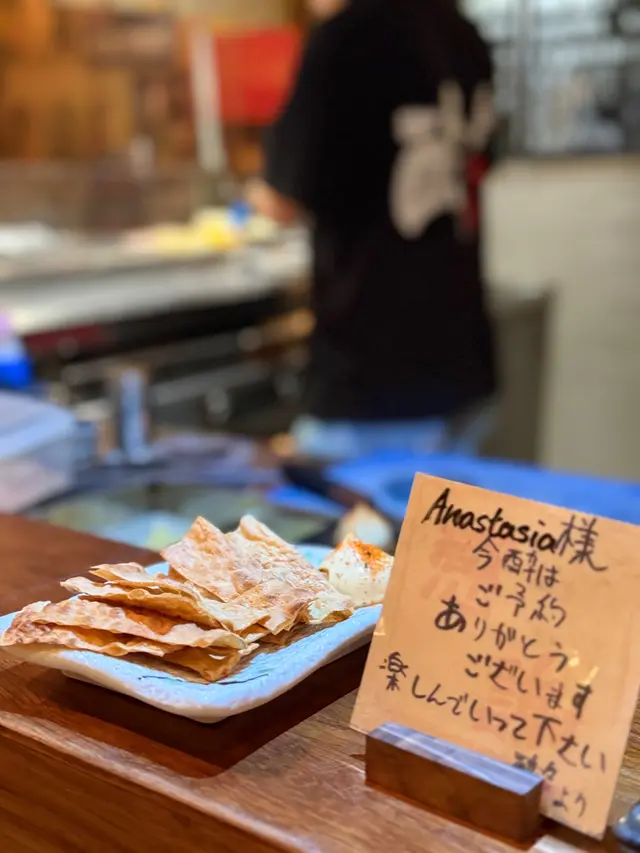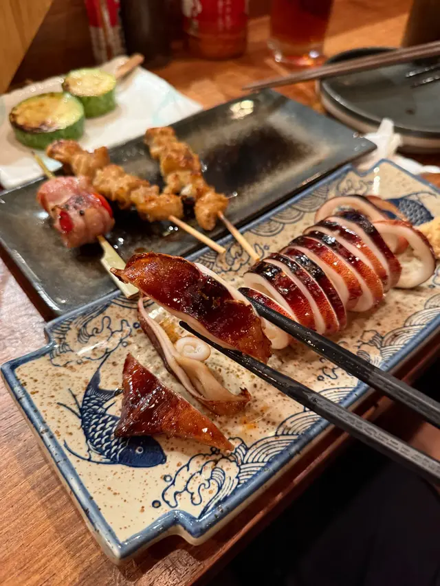 採用真炭燒製串燒,睇住幾位廚師不停燒 🍗火同煙全晚無停,轉頭又見廚師同客人乾杯熱熱鬧鬧,日本居酒屋氣氛 🍻🔹大力推介 🔷🔅鱈魚乾🔅免治雞皮燒得脆卜卜,好香口,傾偈、送酒一流🔅牛肉春菊卷🔅萵苣豚肉卷牛肉同豚肉燒過後充油脂香卷住大量爽脆多汁嘅蔬菜,即時減低油膩感覺 🔅白鰻魚皮燒得微脆,肉質細膩又有點彈牙不過小心佢有幼細骨仔🔅甲羅燒配法包唔止有蟹膏,重放入蟹柳蟹籽鮮味濃郁,而且鹹香十足🔅茶漬飯 (明太子)加入芥末,鹹鹹辣辣又帶點清爽可以解一解串燒嘅膩食完有遊戲金幣,可以夾「公仔」,有機會夾中折扣優惠。交重學費多年嘅小編,成功夾到,抽中A4和牛肉眼一份,又要再去喇✌️✌️✌️…查看更多