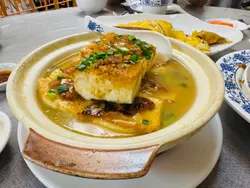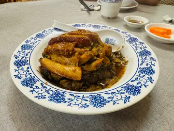 1. Braised Pork Belly with Preserved Vegetables (Mei Cai Kou Rou) 🐖The pork belly is tender, which is a plus, but the preserved vegetables contain some grit, affecting the overall texture. The marinade lacks definition—it’s hard to pinpoint what flavors are coming through, which makes the dish feel confusing rather than satisfying. A cleaner execution and more balanced seasoning would help this classic shine.2. Hakka-style Braised Tofu 🥢This dish is decent but lacks a distinctive edge. The tofu is quite thick, which makes it harder for the sauce to penetrate and infuse flavor. Traditionally, Hakka cuisine often incorporates salted fish to bring a bold, savory punch to otherwise mild ingredients. Adding a touch of salted fish here would introduce a deep umami layer and aromatic richness, helping the tofu absorb and carry the flavors more effectively. It’s a solid base, but with that classic Hakka twist, it could become far more memorable.3. Poached Chicken 🐓The chicken is fine—cooked well and served traditionally—but it doesn’t leave much of an impression. It could benefit from a more aromatic dipping sauce or a touch of ginger oil to enhance its natural flavor.4. Combo Dish: Sweet and Sour Pork Ribs & Deep-Fried Squid 🦑 The sweet and sour ribs are enjoyable, with a good balance of tang and tenderness. However, the deep-fried squid is overly salty, the coating is tough rather than crispy, and the squid itself is too chewy. It’s a dish that unfortunately misses the mark and feels off-putting.5. Pickled Vegetables (Side Dish) 🥒Surprisingly, the standout of the meal was the pickled vegetables. Crisp, refreshing, and well-balanced in acidity, they offered a bright contrast to the heavier dishes. It’s a simple side, but executed with care—and sometimes, that’s what makes all the difference.That said, the restaurant’s traditional setting offers a nostalgic charm that’s rare in Hong Kong today—worth visiting for the atmosphere, even if the food is hit-or-miss.…查看更多