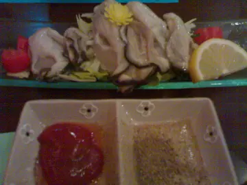 朋友介绍深水埗有间唔错既日本居酒屋, 入到去环境唔错, 食物方面各款食物都唔错 :)蜜桃梳打 : 每日有不同特饮 珍珠蚝 : 不用 $100 可以食到鲜甜珍珠蚝 .... 抵鱼生船 : 三文鱼, 油金鱼新鲜, 其他一般盐烧多春鱼 : 唔错值得一试