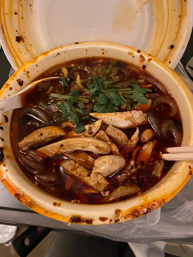 自從一個人搬咗出嚟住最頭痕就係諗晚餐食咩好,之前經過呢間已經想試吓,終於都有機會試試佢!一開始睇到餐牌已經諗好要食咩😆🤪,我簡左酸辣粉,中辣加雞絲酸辣粉黎講,佢都算油,所以好保温,食到尾都好夠熱,雞絲唔係一絲絲而係一舊舊,本身有d咸咸地,唔係白灼雞肉,我幾鐘意,頭幾啖都好正常,有齊酸辣粉既精粹,酸,辣,麻,佢d酸菜都好好食,酸辣粉都夠彈牙,唔會過淋,係食到一半左右問題黎喇,唔知點解會有啲苦苦地,唔知係邊度有問題🧐🤷🏻‍♀️整體黎講,都可以再俾多次機會佢,試吓其他野食既🤣😂👍🏻 今餐承惠$35🙆🏻‍♀️查看更多