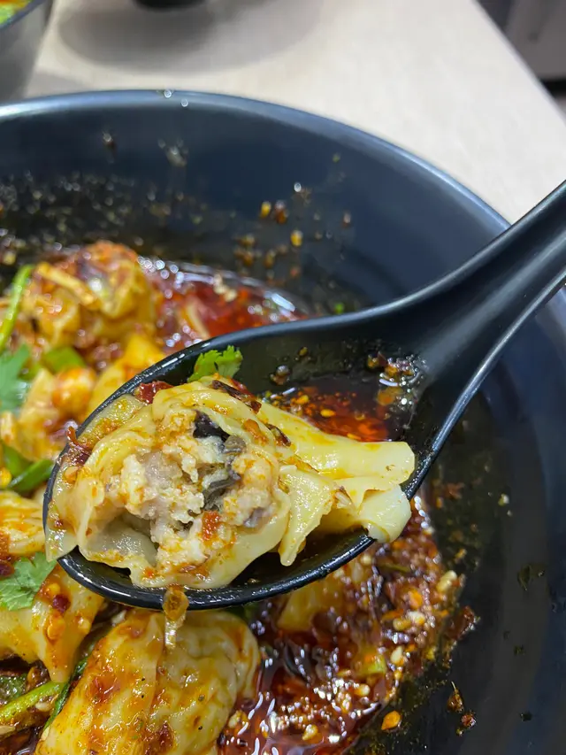 已經係第二次幫襯呢間小店,老闆娘係重慶人,所以佢地既野食都好正宗,好有重慶既味道今次食反重慶雲吞(小),細碗有十粒,加6蚊仲可以配米線 薯粉or面,相當抵食,而且雲吞都好足粉,入面有豬肉同木耳絲,食落好爽口,加上佢地既麻辣湯底👍🏻👍🏻👍🏻食完一粒又一粒,依家諗返起都留哂口水🤤十分推薦大家泥試下呢間小店,鋪面不大只有三張枱,店鋪雖然有點簡陋,但佢地既食物都係好出息,鍾意食辣既人士更加不可錯過呢間既重慶雲吞,包你食過返尋味😋查看更多