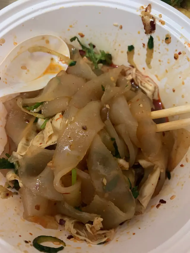 近排都好想食涼拌涼皮尤其是天氣熱更加想又辣又爽的👦🏻話呢一間食過味道都唔錯所以就去叫外賣拎回家食兩個人因為都唔算太餓所以只係叫左兩樣食物📍雞絲涼皮配蓮藕份量正常又唔算好多,但個碗就幾大😗涼皮質地幾滑身有口勁,口感不錯雞絲都入味的,蓮藕係涼拌好鍾意加既配料,加8蚊算平,低可以多幾舊就好😛📍麻辣鵝腸份量都多,加左d青瓜絲鵝腸爽口,唔算好入味但整體都開胃好食既下次想挑戰下小辣#唯有食是最治癒的查看更多