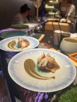 呢間 omakase 真係要瘋狂推薦! 暫時係一間我會想係香港Encore嘅廚師發辦 - 銅鑼灣「重房」,真係要bookmark低!師傅即場發辦,成餐飯食足17-18品,仲要每道菜都係驚喜,完全無菜單,根據時令食材製作,靠晒師傅嘅創意同手藝!最鍾意佢哋嘅互動體驗,師傅會逐道菜講解做法同產地,仲好幽默,成餐飯食得好開心!食材新鮮到不得了,刀工仲一流,估唔到香港都有咁高質素嘅Omakase~🌟必試highlight:主食➡️"金鯛立鱗燒"外脆內嫩,碟邊嘅紫椰菜醬汁加左檸汁,味道好夾又岩打卡!➡️沖繩水雲配蟹肉超開胃➡️北海道帆立貝柚子啫喱勁鮮甜,擺盤精緻到唔捨得食!➡️白津魚刺身,油香超濃郁,面頭嘅自家醃製魚籽甜中帶鹹,同一般死鹹嘅魚籽完全唔同,連魚籽都令人驚艷!➡️拖羅生死戀 - 火炙kama拖羅+生赤身,炙燒香氣超誘人,赤身鮮甜,夾住紫蘇葉一啖咬落去,層次豐富到爆!一次咁樣食拖羅,創新得嚟又好好味~➡️岩手縣石垣貝刺身鮮甜到爆➡️自家製磯煮鮑魚配鮑魚肝醬,鮮味提升到另一個層次!壽司部分唔續一介紹,呢2款➡️白拖羅同馬糞海膽都係超正,白拖羅油份重而不膩! 馬糞海膽完全唔腥, 好creamy!最後碗魚湯熬足七個鐘,暖胃又鮮甜,靜岡哈密瓜為成餐畫上完美句號~💰$1580一位有呢個質素,絕對值回票價!岩晒慶祝活動黎食!…查看更多