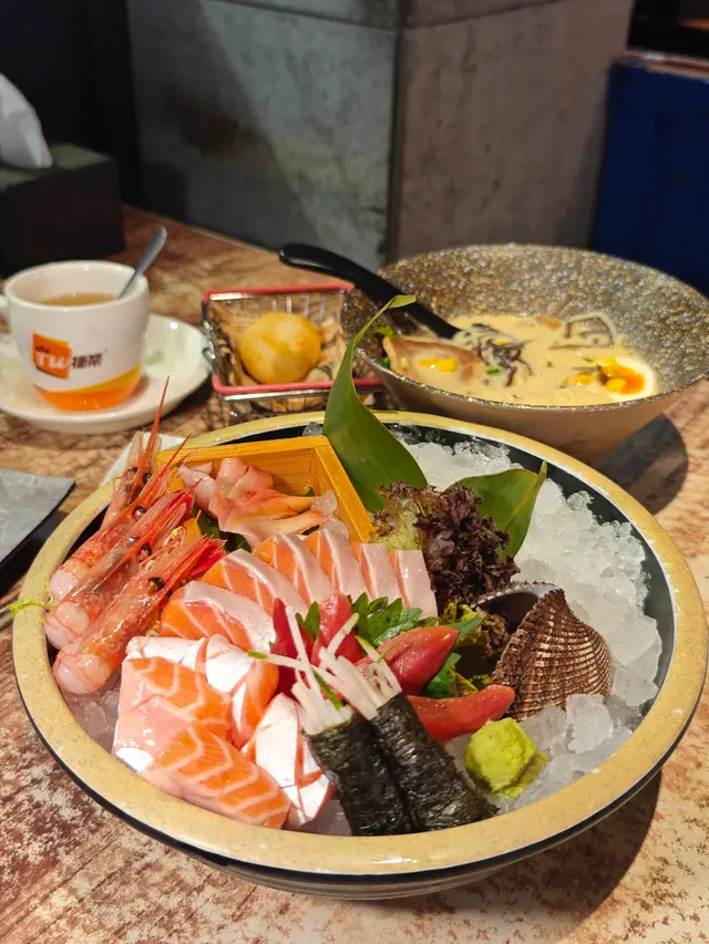 一直都有聽過好多人講呢間野川抵食好食,估唔到真係幾有驚喜。餐廳內外都有座位可以坐,入面空間感幾大,門口仲要有隻1比1高嘅ironman,勁型!CP值高到爆,價錢好親民,由其是5點半前有下午茶更加抵食。牛角包三文治(芝士,炒蛋) $38咁岩去到餐廳未到5半仲有下午茶嗌,仲有得免費升級做紅豆冰。牛角包焗到勁脆,炒蛋炒得好夠滑,勁香蛋味自家制叉燒拉麵,芝士湯底 $59拉麵黎講價錢真係好抵食,叉燒有3片都切得幾厚,卷得幾好唔易散開,肥瘦適中唔會太肥。配料都唔少,有隻半熟蛋,粟米同木耳絲,另加左片芝士好味好多四品刺身盛台 $200,三文魚腩刺身5片 $80勁誇張,呢個價錢有齊甜蝦,北寄貝,三文魚腩,大血螺刺身,每一樣都至少有4片。新鮮!鮮甜!由其是比較少食大血螺刺身都好有驚喜,食落好鮮口感夠爽,而且部份螺肉仲捲左細細條嘅手卷。三文魚腩每一片都好厚切,甜蝦都好大隻,CP值高到爆花之戀2本 $44,三文魚壽司2件 $20壽司同壽司卷都好好食,特別係花之戀蟹籽勁多蟹籽沙律 $64勁大一兜沙律,蟹籽超級多,入面好多青瓜絲同沙律菜燒三文魚頭 $70香蒜大茄燒 $40芝士年糕3件 $42厚燒牛舌 $36串燒同燒物都好出色,燒得好靚。牛舌厚切,淨係加左鹽同黑椒,另外食個陣加埋檸檬汁,油感正夠香,夠嫩幾彈牙。另外茄子勁大條,勁多蒜蓉超級香。仲有三文魚頭燒得勁香,D魚油流晒出黎,全部都好好食…查看更多