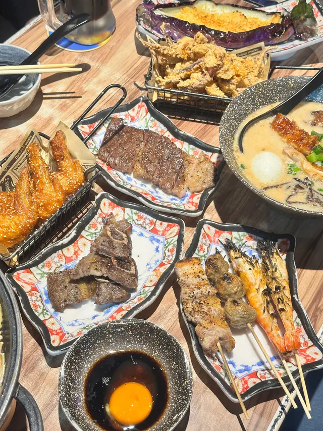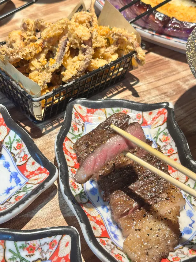♖∥ 門口設室外座位,室內面積頗大,裝潢是水泥大排檔風格,牆身設有投影屏和霓虹燈,抽煙系統做得不錯,室內不會聞有油煙味,坐得舒適。゚・𖥸────── -ˋˏ 𝓜𝓮𝓷𝓾 ˎˊ- ──────𖥸 。゚・𓌉◯𓇋 牛肉壽喜燒 HKD100價錢合理,份量亦多,性價比高。湯底濃郁,肥牛肉量多,而且有麵底,絕對夠飽肚!𓌉◯𓇋 清酒煮活蜆 HKD70沙白大粒又新鮮,湯底煮完鹹鮮十足。而且一點沙也沒有,肉質鮮嫩,推薦!♂ 蒜蓉燒辣蟶子 HKD52/串蒜蓉醬好足料,辣度也夠,味道十分濃郁,口感幼滑。♂ 脆脆鰻魚 HKD46/串燒得皮脆而肉爽,而且無骨,味道十分鹹香,必食推介。♂ 黑豚肉五花腩 HKD32/串肥瘦均勻,燒得帶點焦香,入口一點也不油膩,推介!♂ 燒鹿兒島A4日本和牛 HKD52/串牛味好濃郁,入口爆油脂,口感軟韌,調味較重,也不錯。♂ 雞軟骨 HKD26/2串很脆又有嚼口。♂ 香蒜大茄燒 HKD42蒜蓉醬多,蒜香味很重,要盡快吃,因為涼了會出油。𐃯 柚子百香果 HKD44杯身長形,打卡一流,味道清甜,酒精濃度低。𐃯 鹹檸檬 HKD44酸酸甜甜,夢幻藍色打卡。…查看更多