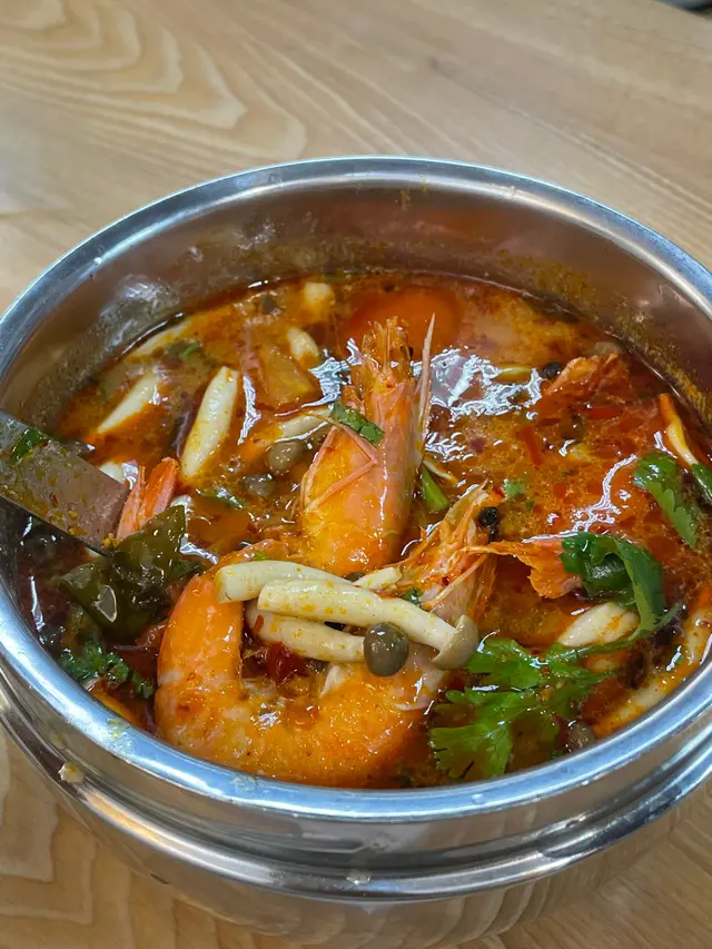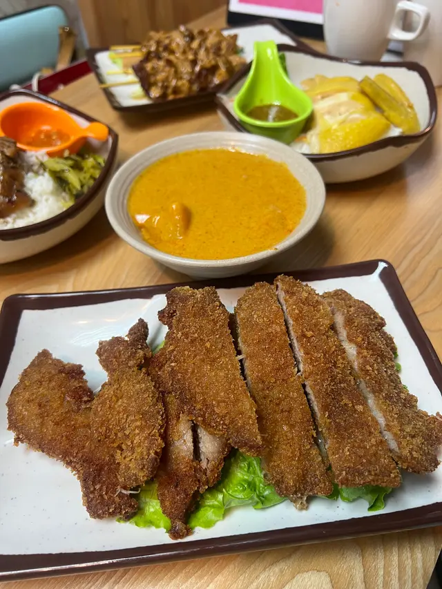 位於荔枝角的金亞淶泰國餐廳主打地道泰式風味,這次試的是青咖哩雞扒飯配泰式奶茶。雞扒煎至微焦,肉質嫩滑,配上青咖哩醬汁,香料味突出但不過辣,醬汁濃稠,拌飯一同享用非常惹味。白飯份量足夠,吸收咖哩後更添口感。泰式奶茶茶味濃郁,可選擇甜度,是一款頗有泰國街頭風味的飲品。環境:店面位於工廈內,裝潢簡約,座位寬敞,氣氛輕鬆。 價格:套餐附飲品,屬合理價位。 食物質素:雞扒煎得香口,咖哩味道平衡,奶茶表現穩定。 食物種類:提供多款泰式飯麵、小食及甜品,選擇多元。如果你鍾意香料味濃的泰式咖哩,這款青咖哩雞扒飯配奶茶值得一試。…查看更多