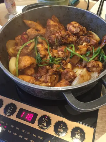 认识这店铺只是偶然机会,路过门口,闻到阵阵辣味,于是即时决定入内试试,有人食鸡煲,有人食鱼,我喜欢辣,当然系重庆然煲啦!但惊中辣太辣,所以拣了小辣。先食鸡,食完先叫职员加汤、再打边炉。食鸡煲,辣味鸡当然好食,但一定要食洋葱,辣的洋葱既辣且甜,起好味。我地另叫了贡丸、豆卜、响铃及红薯粉。豆卜稍硬,不太索味;响铃份量算几大,有6-7件,所以两三个人食都有点多,红薯粉索了辣味,好味,不过加了几次汤,所以味道有啲淡了,不够好味。原先想叫皇帝菜,但冇,有点失望。整体来说,还算不错,回味!…查看更多