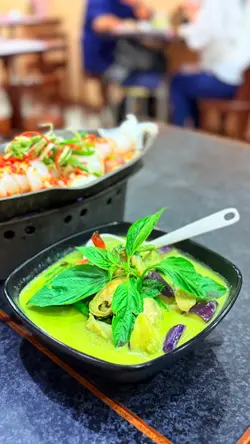 九龙城出名泰菜老字号《金兰花泰国菜馆》,开业多年仍然保持人气旺盛,今晚等我嚟一试究竟啦!🥬 泰式生菜包 泰式生菜包系开胃小食嘅王道!新鲜脆生生嘅生菜叶包住炒得香脆嘅猪肉碎,入面仲夹埋细细粒嘅香茅、蒜头、红辣椒同青柠,淋上特制鱼露酱汁,酸辣甜咸四味完美平衡,咬落爆汁,解腻又提神,夏天食完即刻觉得清爽,份量够晒一盘分享,好啱做开胃菜刺激味蕾!🐙 泰国明炉鲜鱿鱼锅 泰国明炉鲜鱿鱼锅热辣辣明炉上枱,视觉同味道都劲吸引!整只新鲜鱿鱼整条蒸煮再切开,鱿鱼鲜嫩得嚟熟度恰到好处,弹牙唔会老韧,配埋新鲜青柠片、红绿辣椒丝、香草同罗勒叶,汤底用鱼露同柠檬草熬成酸辣清新,带淡淡海鲜鲜味,明炉火力保持汤热到最后一口都暖笠笠,汤底入味但保持鱿鱼嘅原汁原味,简单健康无负担,好啱几个朋友围炉分享,边煮边食!爽🍲 青咖哩喱海鲜捞金边粉 青咖哩喱海鲜捞金边粉绝对系泰式咖哩嘅经典代表,海鲜新鲜,有弹牙虾仁、十足咬口嘅鱿鱼圈同煮到啱啱好嘅青口,浸喺浓郁青咖哩酱入面,椰奶滑顺带青辣椒同香茅嘅清香,甜甜辣辣,金边粉细滑吸满咖哩汁,捞埋食啖啖海鲜配咖哩香够哂满足啊😌🥤 青柠梳打 青柠梳打系完美解辣饮品,清爽~新鲜青柠汁挤出酸味,泡入苏打水,饮落冰凉直入心脾,叫无糖可以完美平衡泰式菜嘅辣味同油腻,饮完即刻醒神提神,无负担又好味,感觉自己喺泰国chill紧!…查看更多