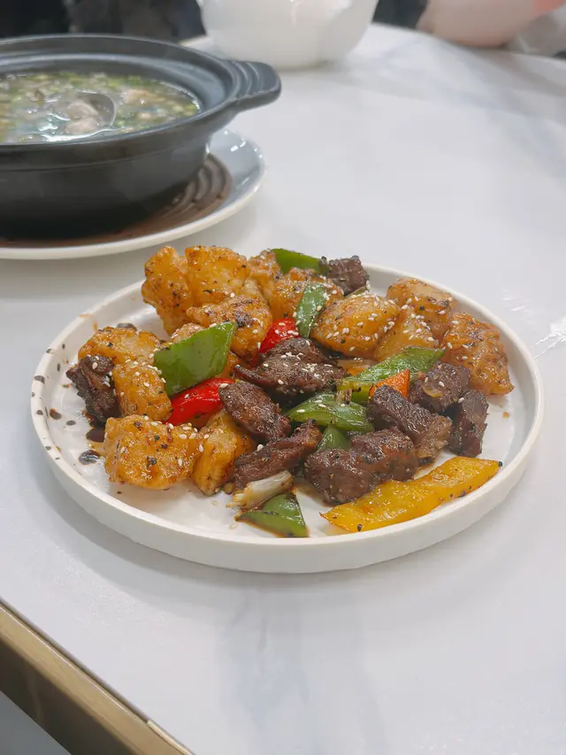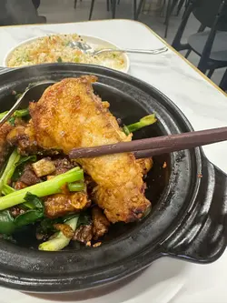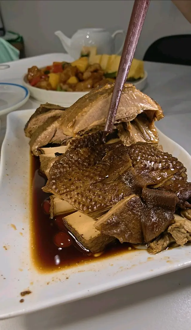 今晚終於約佐幾個舊同事出街聚聚,去旺角試佐呢間新開嘅潮州菜餐廳。朋友之前同我講過,話呢間抵食又舒服,座位設計好有氣氛,於是我同幾個兄弟一於試吓。入到去,環境真係唔錯,裝修現代又唔失傳統feel,仲有個開放式廚房,睇到廚房師傅忙緊,感覺好親切。。我哋一坐低就叫咗例牌嘅滷水鵝,$138一碟,份量真係驚喜到我!待應放低碟時,我仲忍唔住問咗一句:「呢個係例牌份量?」因為實在太誇張,除咗鵝肉,仲有豆腐同花生,味道滷得入味,鵝皮Q彈,肉質軟滑,花生同豆腐吸咗滷水汁,食落去好滿足。之後我哋再叫咗一碟椒鹽九肚魚,$138,上面灑滿咗炸蒜,香氣一出嚟即刻勾起食慾,魚肉新鮮又脆口,椒鹽調味唔太鹹,配上蒜香真係一流。。主食方面,我哋點咗砂鍋蠔仔粥,$88一窩,熱辣辣嘅砂鍋一上枱,蒸汽同香氣即刻撲鼻,蠔仔新鮮,粥底濃滑,仲有啲芫荽同蒜粒提味,暖胃又唔膩口。食到一半,我同朋友講,呢間真係抵讚,份量同味道都夠晒水準。環境方面,間餐廳有冷氣同吊扇,感覺涼快又舒適,枱同椅設計都好有心思,坐低真係放鬆咗好多。。整體嚟講,呢間餐廳食物質素同環境都令我地滿意。朋友講得啱,呢間潮州菜真係值得一試。食完之後,我哋仲坐咗一陣吹水,時間過得好快。同埋呢刻我先發現原來餐廳優惠食滿$300可以加$8多一碟雜錦拼盤或者韭菜豬紅,但係我哋已經太飽,唯有下次同家人一齊再嚟,試吓其他菜式。…查看更多