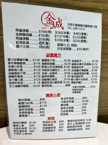 📍金城小厨今次同大家分享呢间餐厅最大特色系可以食到好多传统小菜‼️🐟古法焗鱼肠 ($118)焗鱼肠呢个𩠌唔系周围都食到呢到既鱼肠处理得好干净鱼肠一D都唔腥鱼肠加鸡蛋再加果皮同其他香料一齐焗表面脆皮入面好香❗送饭一流👍🏻🍆杏香茄子 ($128)本身都唔知有呢碟𩠌见到隔离枱有嗌即刻试试佢好多杏仁片包住茄子炸真系做到外脆内软既口感茄子出名吸油但厨师火喉控制得好唔会觉得好重油腻感👍🏻赞‼️🪿明炉烧鹅 (半只) $240呢碟烧鹅系侍应姐姐话新鲜出炉烧好强烈建议我地嗌所以试下🤣烧鹅岩岩烧好外皮真系好脆烧鹅仲好juicy😋系无介绍错既💯🍍菠萝生炒骨 ($98)呢个生炒骨份量十足纯粹因为我想食🙈味道正常发挥✅🦐蒜蓉粉丝蒸开边虾 (大约$200~)厨师逐只虾开边再加蒜茸粉丝蒸蒸得岩岩好所有野都好入味🥳🐥药膳鸡脚 呢个系午市先供应但因为太好食所以打电话预留📞药膳汤好浓鸡脚煮到好淋好入味中意吮骨既可以试下🐥🤤🦑椒盐鲜鱿 ($118)鲜鱿好新鲜‼️炸粉唔算好厚成件椒盐鲜鱿炸到好香口‼️好食✅金城小厨真系有好多一般餐厅食唔到既传统小菜👨🏻🍳我只系介绍左其中几样其他就要等大家去试下发掘下啦‼️😋…查看更多