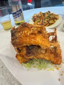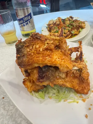 今日公众假期,6点左右来到餐厅已经半满。两个人点了椒盐鱼吓巴、鱼香茄子、虫草花蒸鸡,另奉送老火汤。椒盐鱼吓巴外皮烤得金黄酥脆,椒盐香气不过抢,鱼肉鲜甜突出,口感像日式烧鱼鲛。份量非常大,但最后竟然全给吃光🤭鱼香茄子一向是我至爱,酱汁浓郁稍稍偏油,但配搭白饭超香😍虫草花蒸鸡属基本水准,鸡肉嫩滑;老火汤则清甜滋润!整体来说食物质素有水准,价格合理,服务亲切。没有花巧摆盘,但每道菜都用心,适合想吃得轻松又满足的夜晚。😌…查看更多