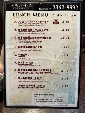 性价比高的中环日本野Lunch黎帮衬 餐牌上主要都系一啲丼饭 或者系一啲烧物配饭 另外见到佢主餐牌嘅嘢食都系冲绳风 望落去选择都好多 一定要揾一次夜晚嚟试吓今日点左个是日刺身丼 (油甘鱼 吞拿鱼蓉)118有个丼 有沙律(啲沙律菜爽甜新鲜🥺) 有汤 有渍物 另外有麦茶 店员都好积极keep住帮人斟茶👏🏻现场听到师博新鲜剁吞拿鱼蓉嘅声音 听到都开心个丼一黎到 真系开心既 啲料食落真系新鲜啲油甘鱼大片同几厚 吞拿鱼蓉好鲜甜好好味呀一定会定期黎食佢哋原来中午都接受电话订枱 下次黎 电话订先