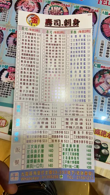 金壽司 (旺角) 网址: https://s.openrice.com/QrLS0DeWA00 地址: 香港旺角登打士街33-35B號地下C1號舖 电话: +852 21561213