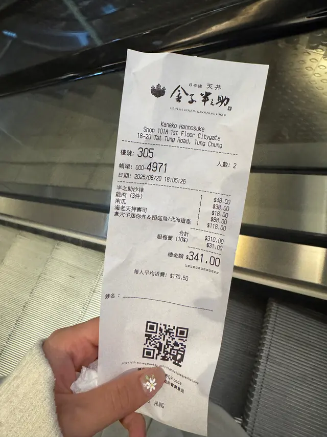 入东涌Outlet行街, 发现原来有间食天妇罗既金子半之助,平时系市区都要等位,难得今次可以直入,即刻去试试。餐厅装修以木系为主,墙上仲画左大大棵樱花树,犹如置身日本。一入左就比左两杯黑豆茶~味道浓郁叫左个必食既江户前天丼,份量十足! 入面既招牌穴子天妇罗长达30cm, 大大大大件好吸引,超厚肉身,肥美软滑。两只海老弹牙爽口,小柱鱿鱼天妇罗饼入口烟韧,炸前轻轻系面𠝹左格仔花, 可以逐格食,好方便。流心蛋炸得啱啱好、香浓蛋汁同埋海苔及、荚豌豆一齐食,味道丰富。朋友叫左个迷你鱿鱼&海老天丼, 由于金子半之助采用日本特制高级胡麻油,胡麻油制成的天妇罗芳香扑鼻及色泽会较深,所以整体炸得均匀,唔会好油腻,内里仲保留咗食物鲜味,值得一赞。仲配多个冷稻庭乌冬,扁身既稻庭乌冬,沾上淡淡昆布冻汤先食,入口特别清爽。另外仲叫碟日式炸鸡,果然系天妇罗专门店,鸡肉外皮香脆,内里鲜嫩充满肉汁,一D都唔会太干身,有惊喜!仲有个饮品放题,可惜食得太饱,下次有机会再试。…查看更多